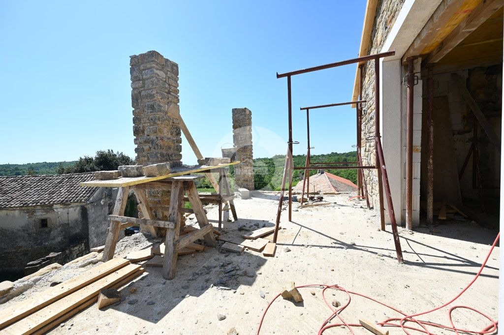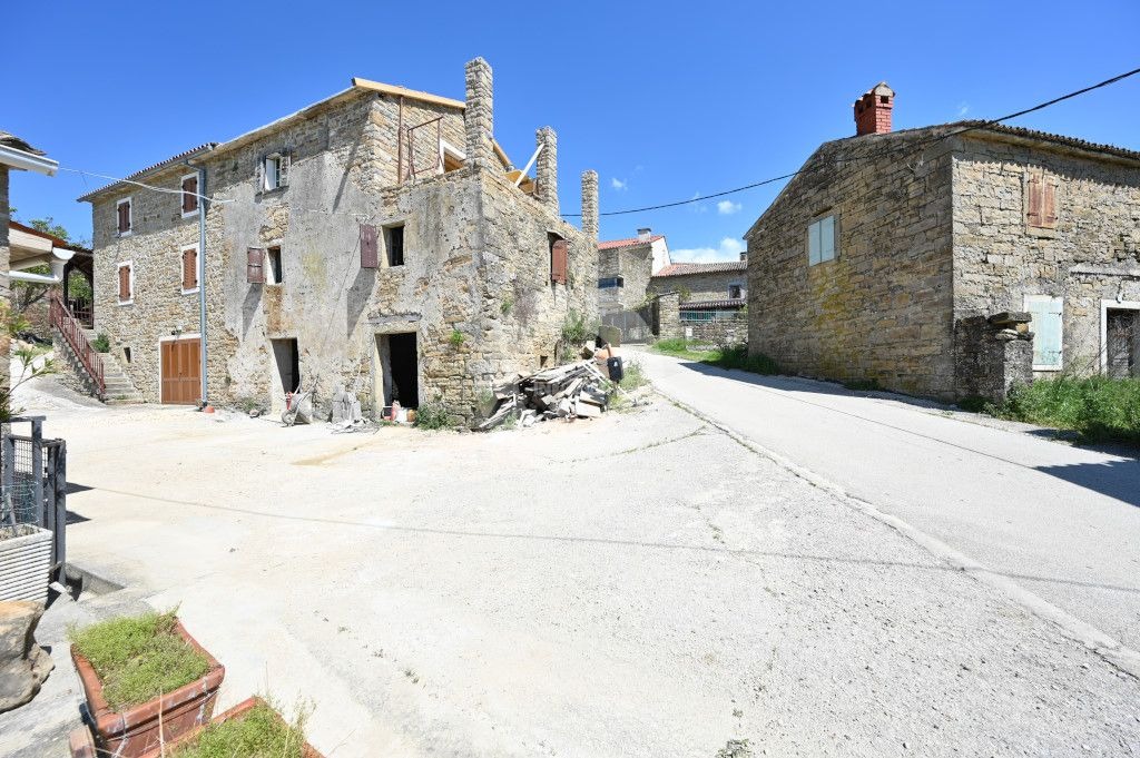 Opis: Stara kamena kuća potpuno renovirana (trenutno u fazi renoviranja) u malom mjestu pored Buja i Momjana.Mikrolokacija je svima dobro poznata Bujština koja plijeni interes gastro ponudom i vinskim podrumima kojima nitko ne može odoljeti.Kuća je krajnja u nizu, na tri etaže, ukupne površine 145 m2.Pred kućom je dvorište od 60 m2, a preko ceste je zemljište od 100m2 koje će poslužiti za parkirna mjesta i još ponešto.U prizemlju kuće smještene su kuhinja i dnevna soba, na prvom katu dvije spavaće sobe, dvije kupaone te izlaz u dvorište.Na trećem katu je posebna, veća spavaća soba s vlastitom kupaonom i terasom s lijepim pogledom na more i zelene brežuljke.