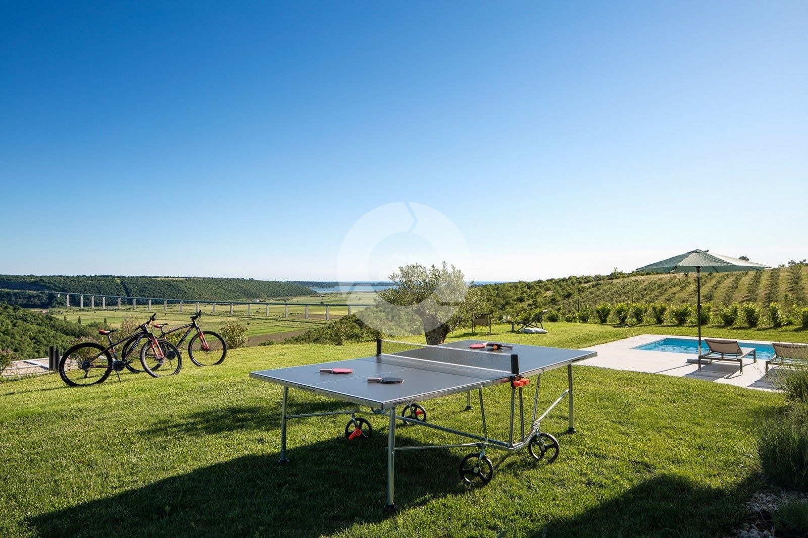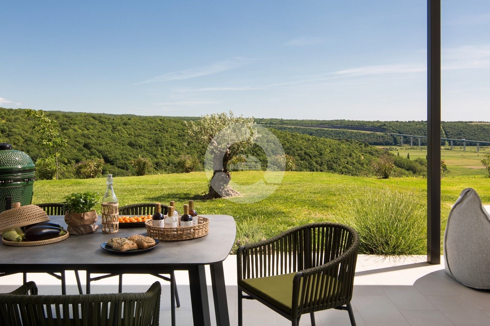 Opis: ISTRA, BRTONIGLA, LUKSUZNA KUĆA S 4 SP.SOBE I PREKRASNIM POGLEDOM NA MORE U malome mjestu nedaleko Brtonigle prodajemo vrhunski opremljenu vilu s 4 spavaće sobe i pogledom na more. Radi se o objektu stambene površine 234 m2 smještenoj na okućnici površine 2002 m2. INTERIJER I EKSTERIJERInterijer kuće otvorenog je tipa s puno prirodne svijetlosti. Ulaz se nalazi na katu objekta gdje su smještene 2 spavaće sobe s vlastitim kupaonicama. U prizemlju su smještene dnevne prostorije (velika kuhinja, blagovaonica i dnevni boravak) te još 2 spavaće sobe s vlastitim kupaonicama i gostinjski wc. Dnevni boravak se nastavlja u vanjski prostor s velikom natkrivenom terasom i stepenicama koje se spuštaju prema bazenu s pogledom na maslinike, vinograde i more. Bazen površine 44 m2 grijan je i ima sistem elektrolize. Uz bazen nalazi se ljetna kuhinja, vanjski tuš i wellnes prostor. Posebnost unutarnjeg prostora čini uređenje koje kombinira prirodne materijale (drveni podovni, kameni detalji) i boje te kamin za grijanje i ugođaj. TEHNIČKA OPREMA KUĆE:Prozori i vrata - troslojno staklo.Električna sjenila na prozorima....