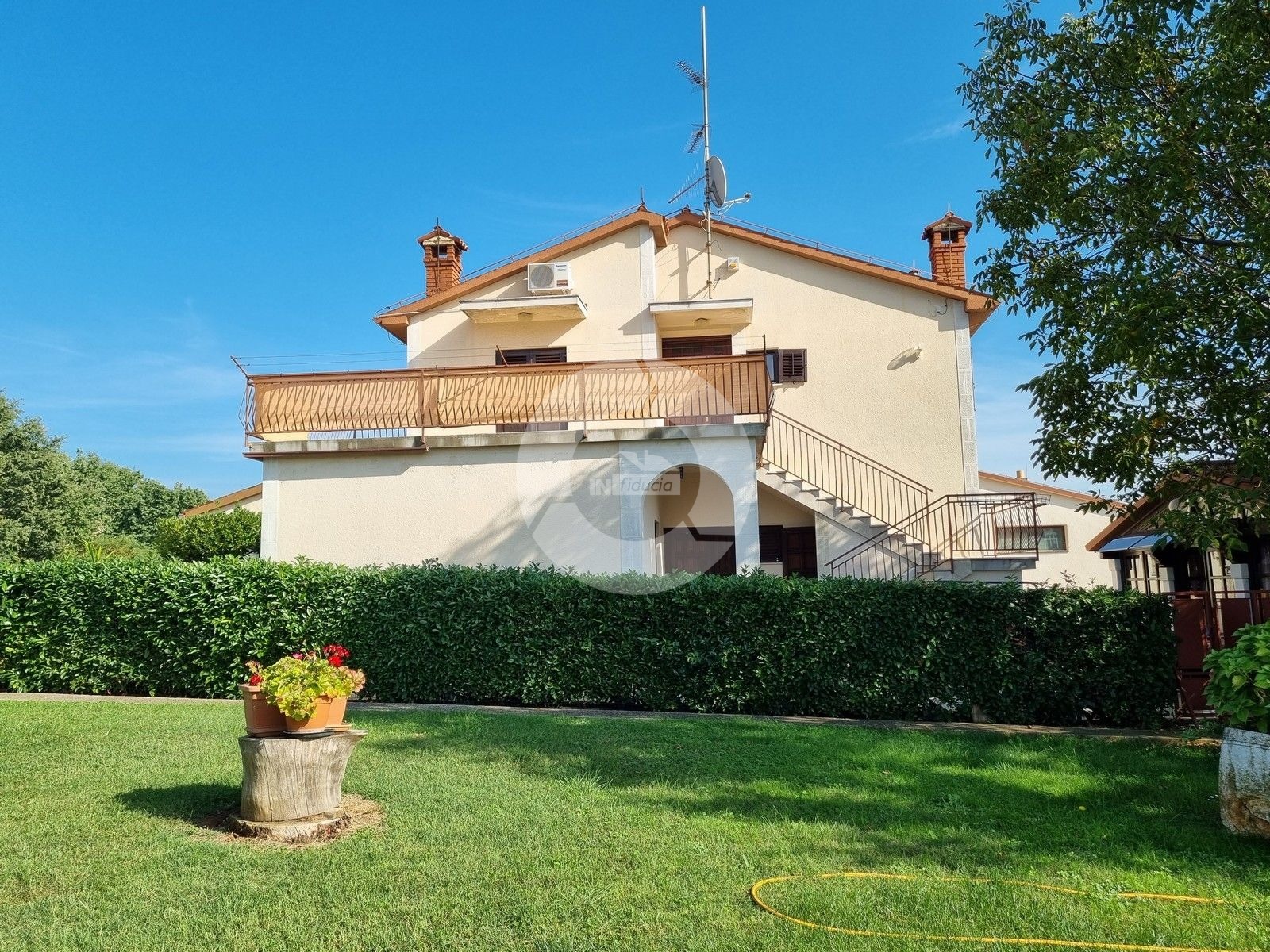 Opis: Stambeno-poslovni objekt prodaje se u okolici Višnjana, na rubu mjesta. Sagrađen je 1986. godine. U naravi je manji dio stambeni (166,78 m2), a veći dio je gospodarsko-proizvoda i poljoprivredna namjena. Iz tog razloga je nekretnine idealna za one koji imaju potrebnu za velikom površinom skladišnih ili proizvodnih prostora. Prodavatelj je legalizirao i objekt od 149,50 m2 na parceli od 1220 m2 u vlasništvu Republike Hrvatske, za što plaća mjesečni najam. Ukupno bruto korisnog prostora ima 166,78 m2 stambenog i 568,61 m2 gospodarskog. Glavna kuća u prizemlju ima veliku halu, kupatilo i garažu. Vanjskim se stepenicama odlazi u stan na 1. katu koji ima prostranu terasu sa pogledom na more, hodnik, kuhinju, blagovaonu i dnevni boravak sa izlaskom na još jednu terasu, te tri spavaće sobe i kupaonu. U tom stanu grijanje je regulirano putem peći na drva i klimom, a ima i centralno grijanje na naftu. Oko kuće je lijepi uređeni vrt, i konoba sa kaminom. Osim hala, uz kuću postoji jedna prostorija koja se koristi kao ured. Trenutno su ured i hale u najmu, te kupac može preuzeti najam. U halama postoji trofazna struja od 29 kW....