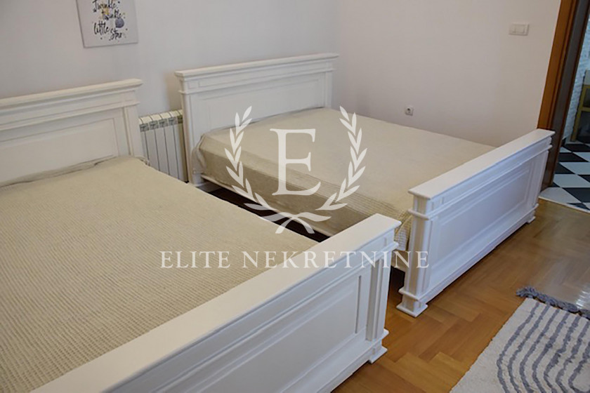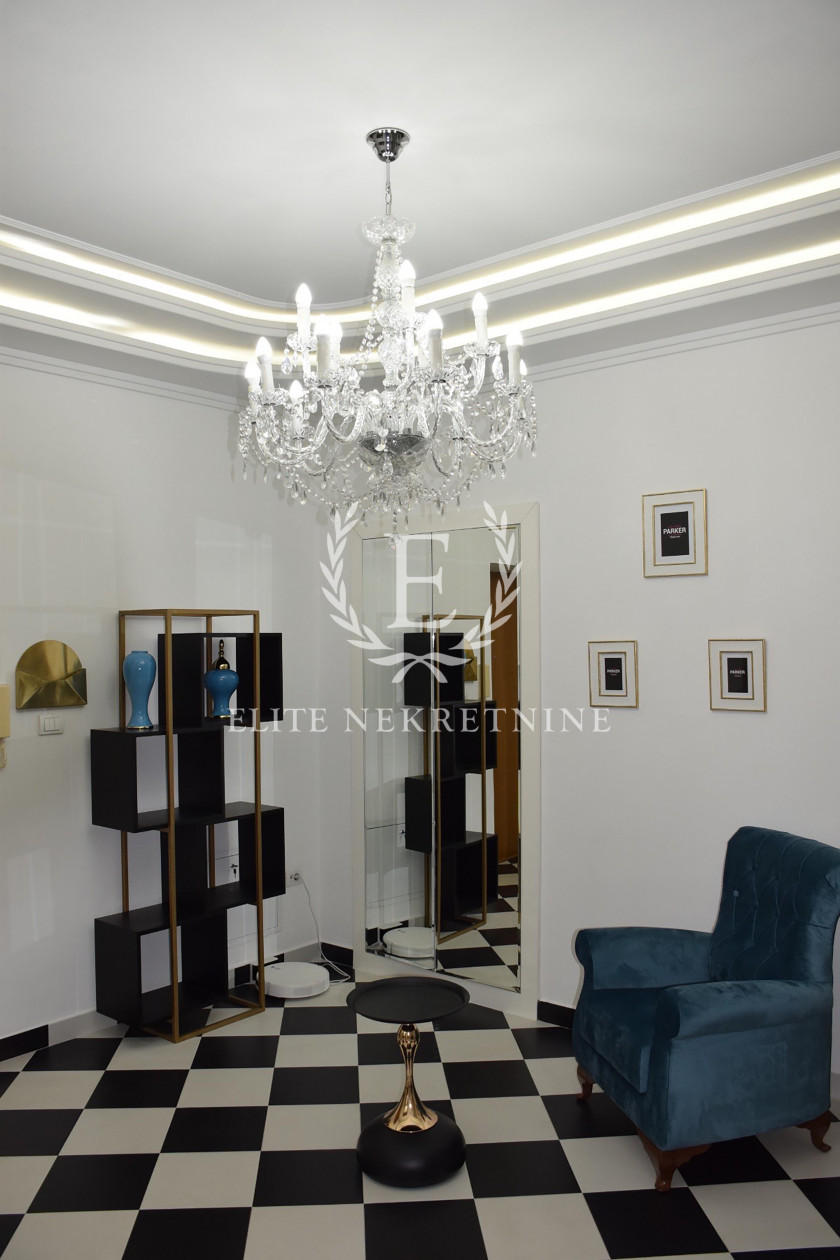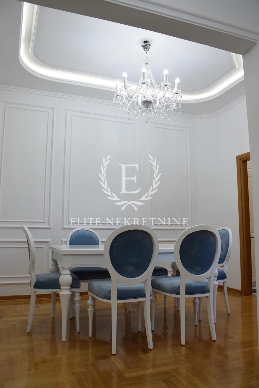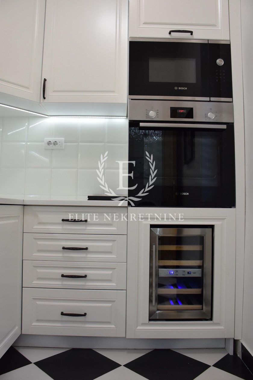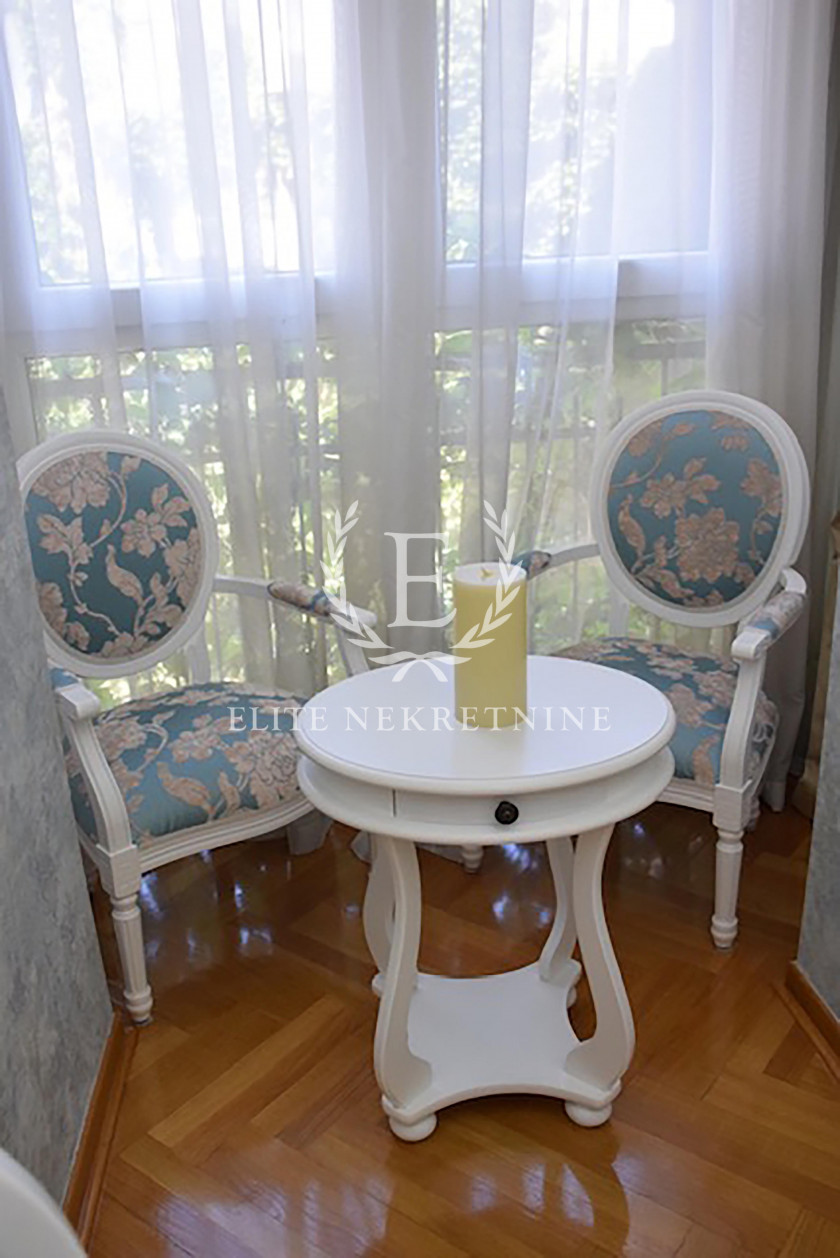 Opis: U ponudi je luksuzno opremljen stan od 90m², smešten na trećem spratu stambene zgrade bez lifta. Enterijer odiše elegancijom i udobnošću, sa prostranim salonom, svetlom dnevnom sobom, trpezarijom i moderno uređenom kuhinjom. Dve komforne spavaće sobe i dva savremeno uređena kupatila pružaju maksimalnu funkcionalnost i komfor. Stan je klimatizovan – svaki prostor poseduje sopstveni klima uređaj, a dodatnu udobnost tokom cele godine omogućava centralno grejanje.