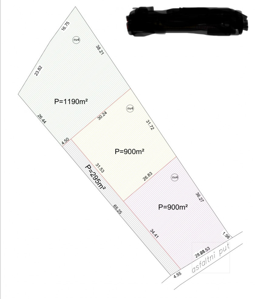 Pristupni put širine 4,5 m vodi direktno do svake parcele (kao na skici).