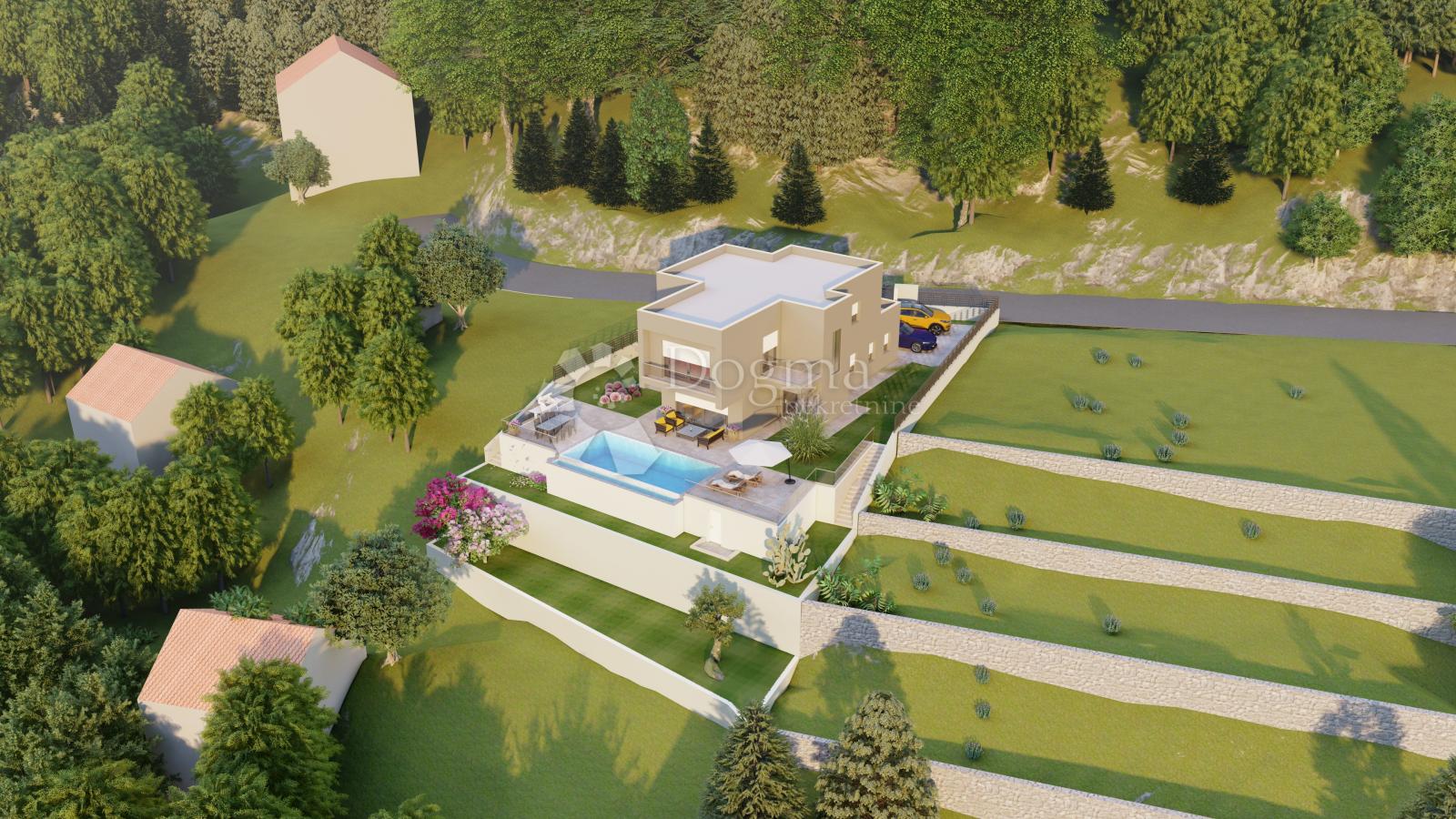 Glavnim projektom pravomoćne građevinske dozvole predviđena je samostojeća obiteljska kuća s vanjskim bazenom koja je prilagođena postojećem stanju terena kako ne bi bilo puno pripremnih radova u vidu iskopa.