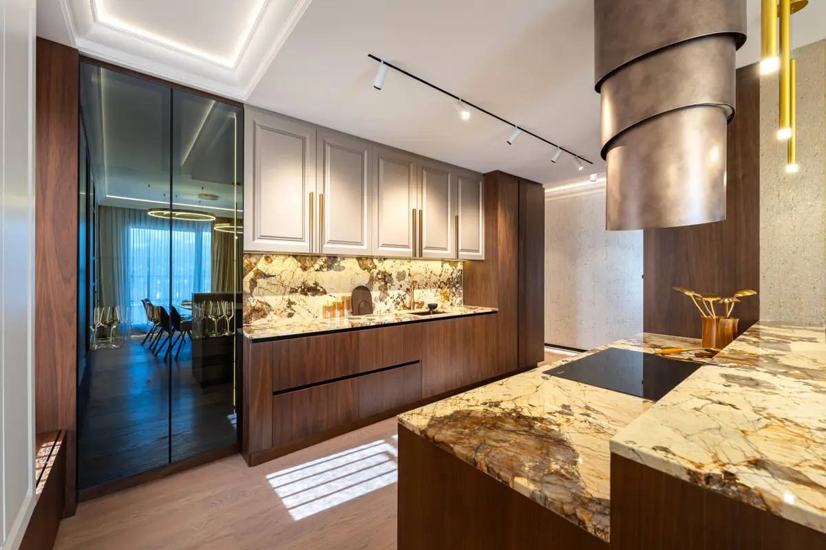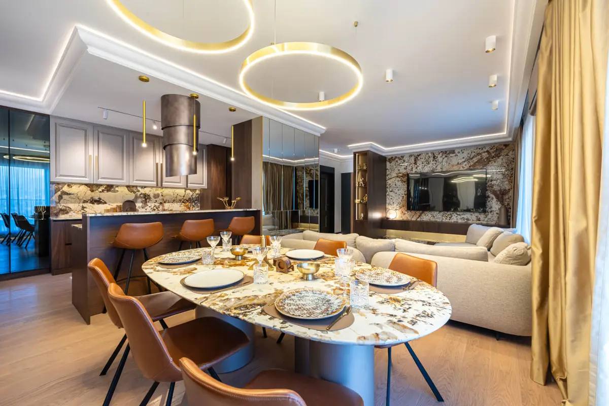 Opis: Na prodaju je elegantan i prostran stan u jednoj od najprestižnijih podgoričkih lokacija – Gorica C, području poznatom po mirnom okruženju, uređenim ulicama i blizini diplomatskih predstavništava. Stan se prostire na 116m² i odlikuje se pažljivo osmišljenim enterijerom koji spaja luksuz, udobnost i funkcionalnost. Svaki segment prostora, od izbora materijala do finalnih detalja, urađen je po meri, uz upotrebu visokokvalitetne brendirane opreme i modernih dizajnerskih rešenja.