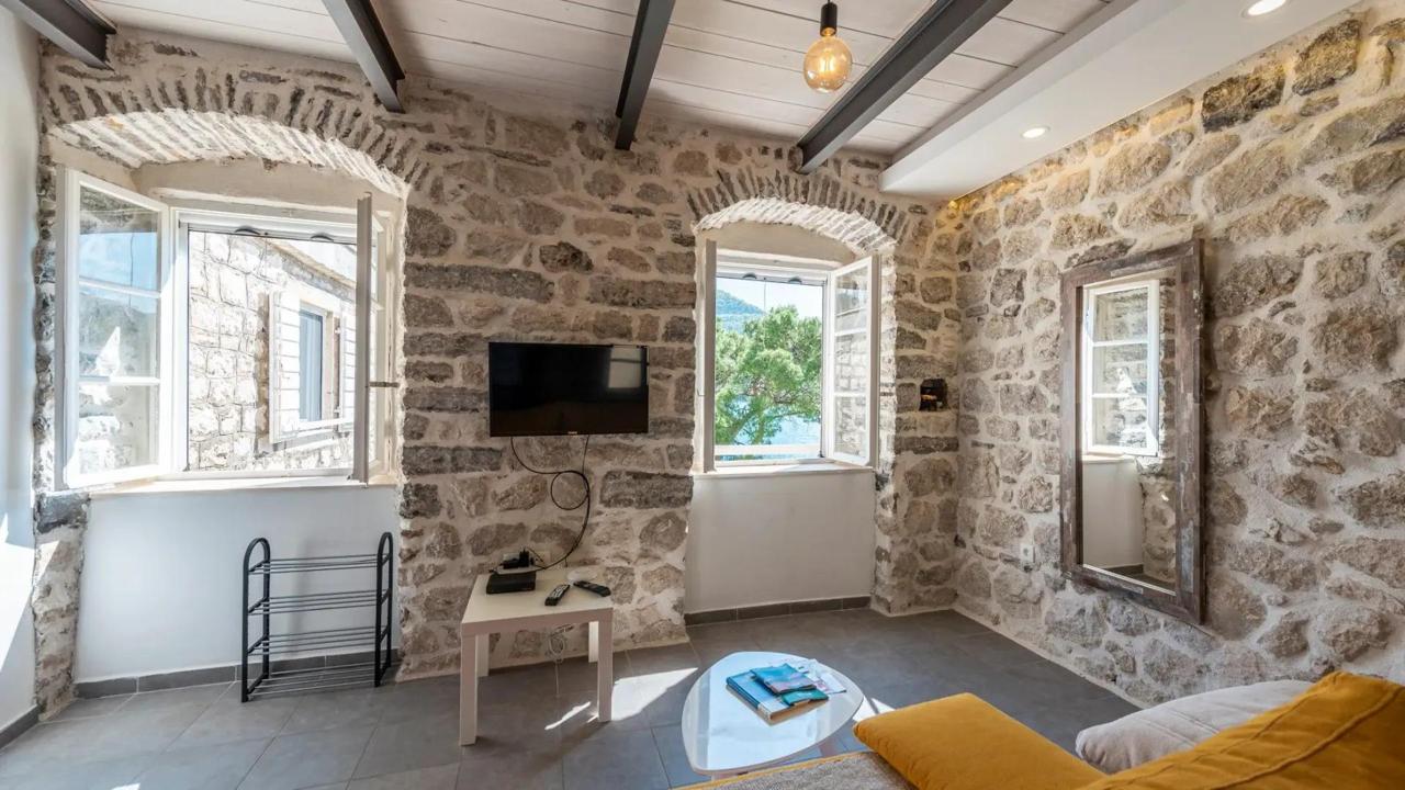 Kamena vila se sastoji od 4 odvojena apartmana, renovirana i opremljena, na prvoj liniji do mora, sa terasom okrenutom ka 2 bisera Boke kotorske, Gospa od Skrpjela i Sv Djordje, sa dvoristem.