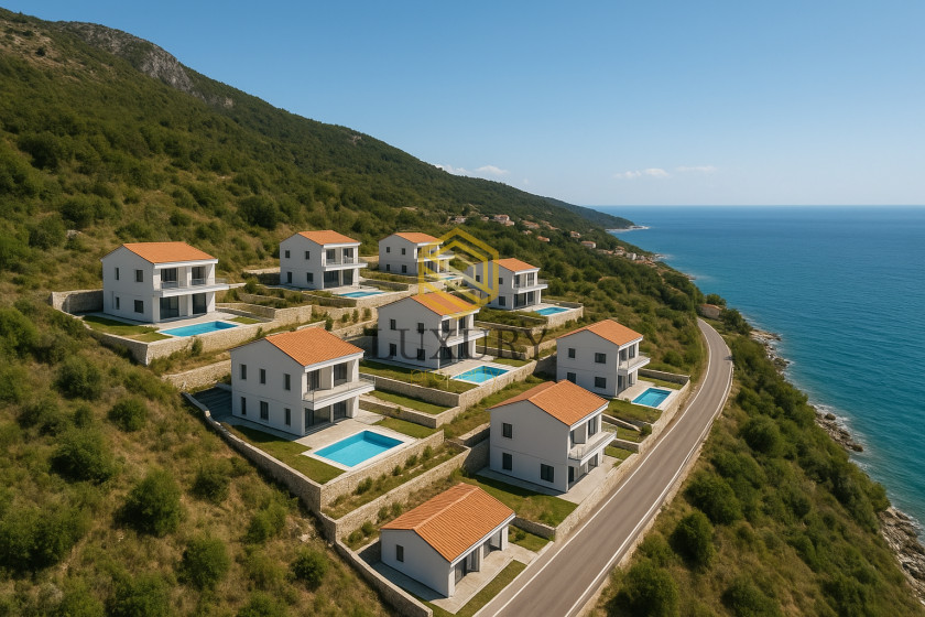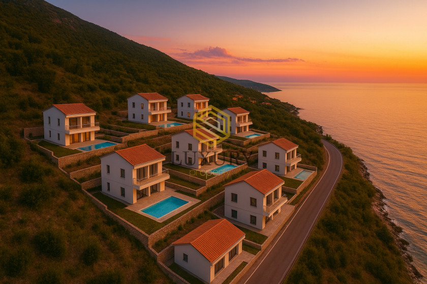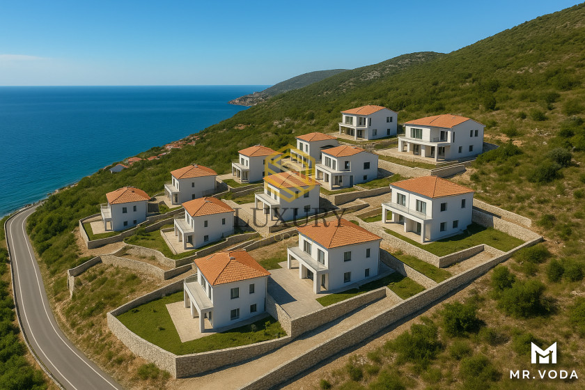 Parcela se nalazi na padini, u brdu, što ograničava na kaskadni raspored objekata i nesmetan otvoreni pogled ka moru. Orijentacija prema istoku pruža jutarnje sunce, mekani prirodni ambijent i panoramu koja ostavlja snažan vizuelni utisak u svako doba godine.