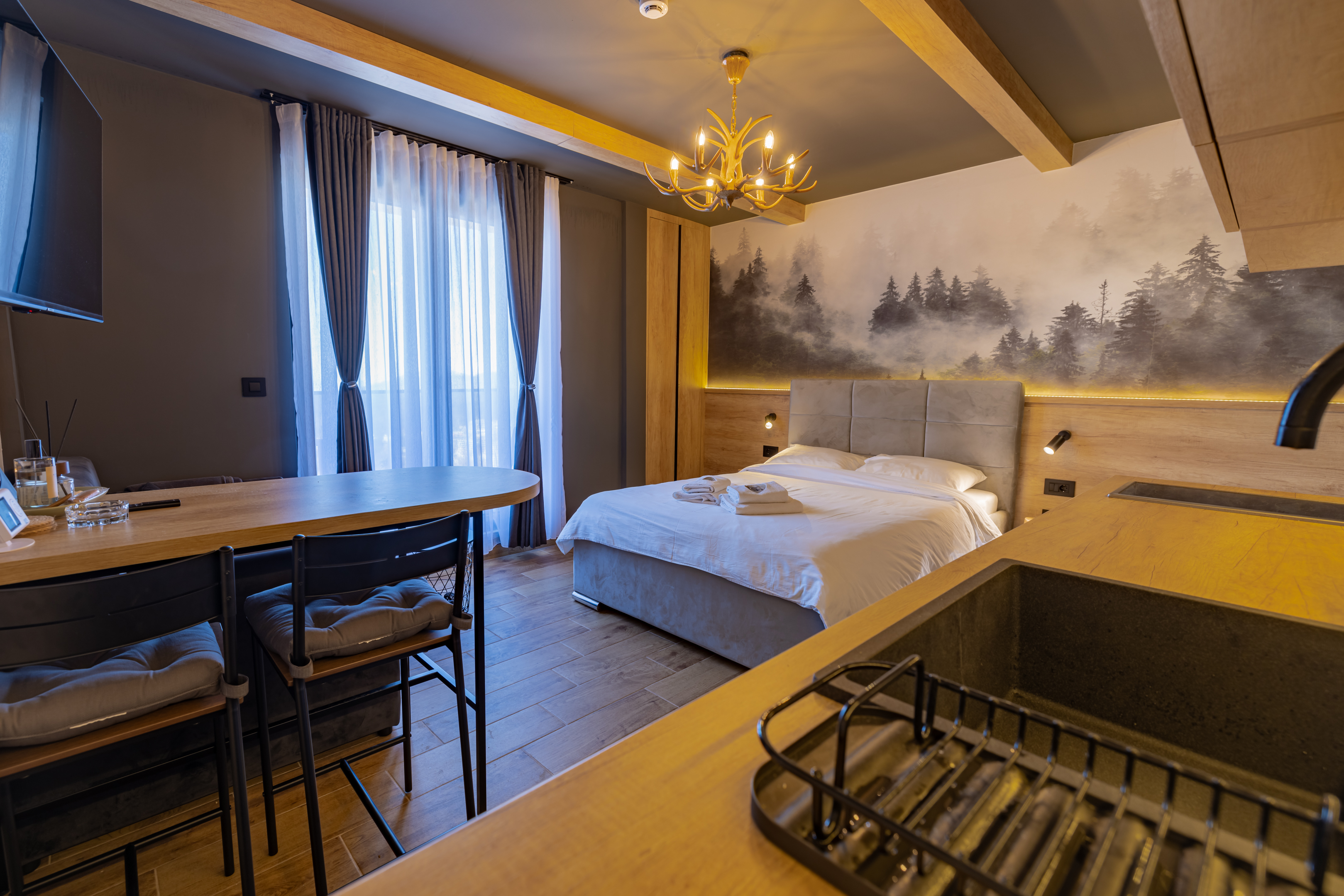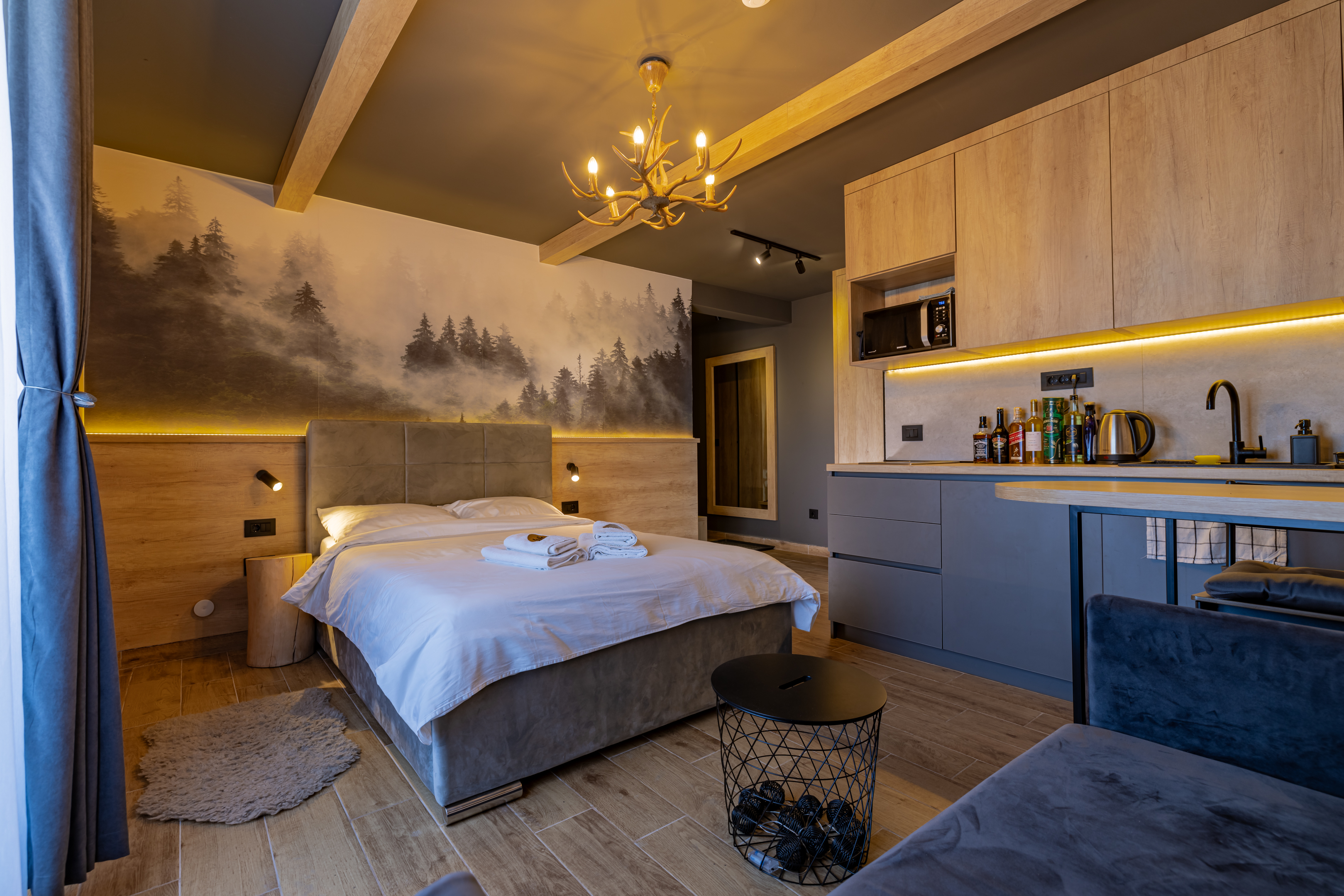 Opis: Apartman LuFi nalazi se na Kopaoniku, u ulici Branka Miljkovića 28. Smešten je na prvom spratu, površine 30 m² i pogodan za boravak do četiri osobe. Apartman je po strukturi studio, poseduje jednu prostoriju sa velikim bračnim krevetom i dvosedom na rasklapanje. U okviru dnevnog boravka nalazi se potpuno opremljena kuhinja sa indukcionom pločom, ketlerom, mikrotalasnom, frižiderom, posuđem i escajgom. Kupatilo je novo, moderno opremljeno i sadrži tuš kabinu. Gostima su na raspolaganju flat-screen TV sa kablovskim kanalima, Wi-Fi, podno grejanje, čisti peškiri i posteljina. Apartman takođe poseduje terasu sa prelepim pogledom na planinu. U neposrednoj blizini nalaze se restorani, kafići, marketi i ski-rent servisi, što ovaj apartman čini praktičnim kako za skijaše, tako i za turiste koji žele da istraže prirodne lepote Kopaonika.