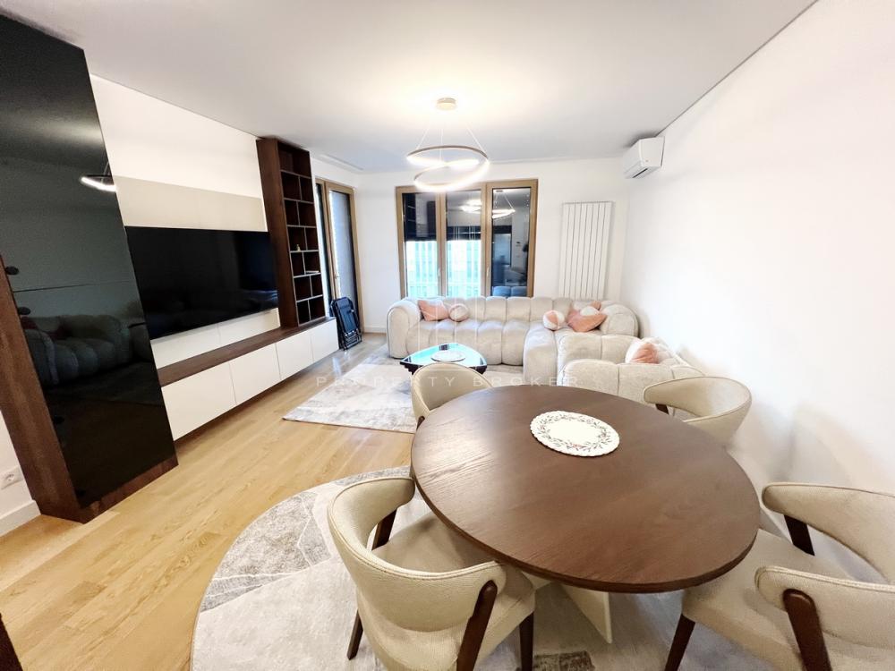 Struktura: prostrana dnevna soba sa trpezarijom, potpuno opremljena kuhinja, spavaća soba sa ugradnim plakarima, moderno kupatilo, predsoblje i terasa.