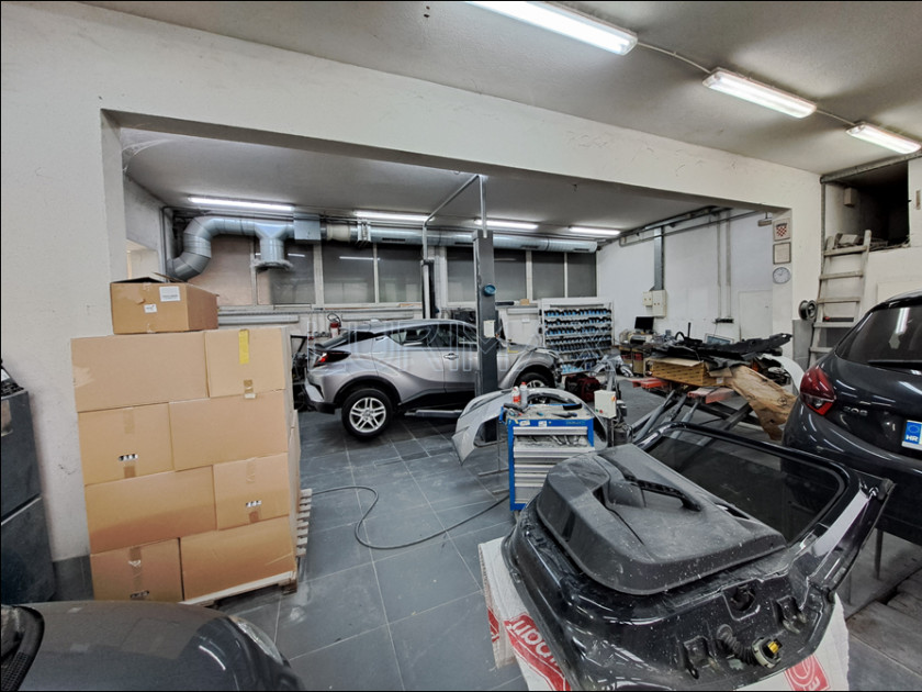 U prizemlju se nalazi poslovni prostor koji se sastoji od radionice, ureda, sanitarnog čvora i kotlovnice na plin, a koristi se kao autolakirnica. Visina zidova je 3,80 m.