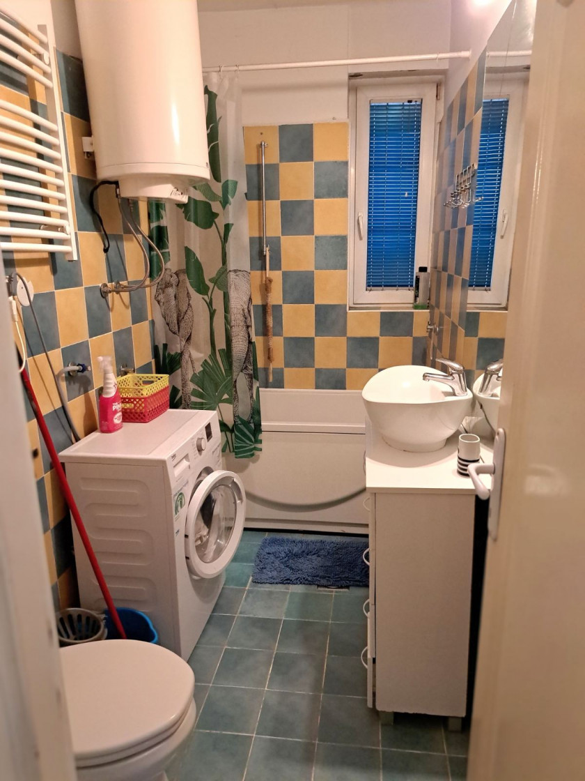 Kompletno je opremljen kućnim aparatima i uređajima(veš mašina, pegla, daska za peglanje).