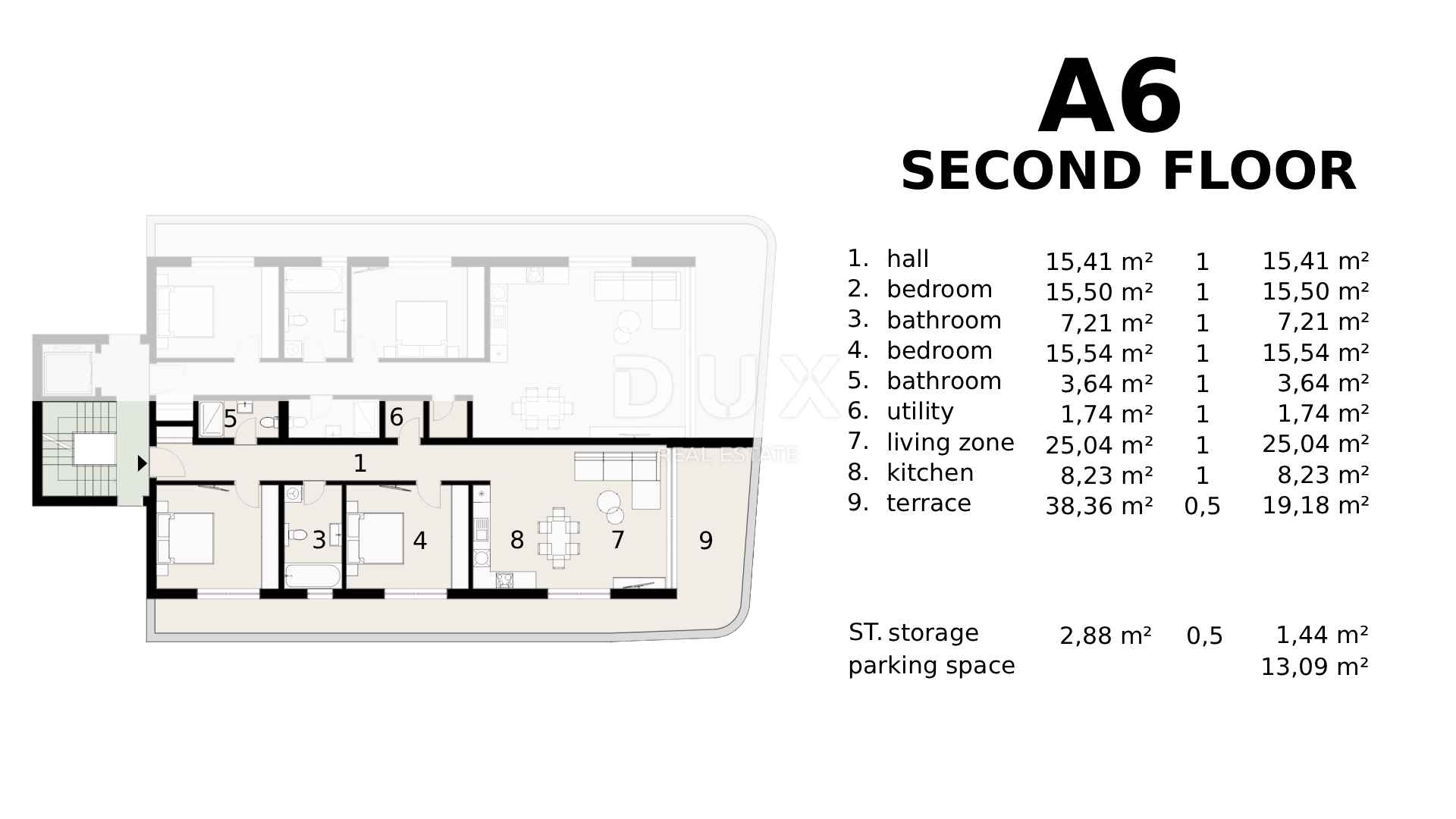 • ukupna neto površina stana (s koeficijentima): 112,93 m²