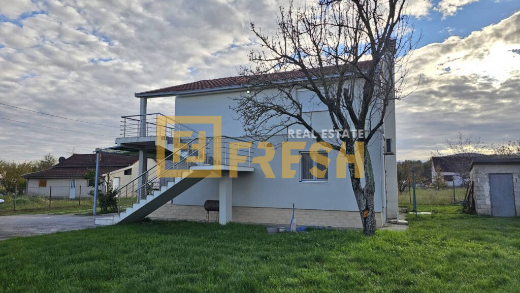 Kuća je na dva nivoa sa vanjskim stepeništem i dva odvojena dvosobna stana.