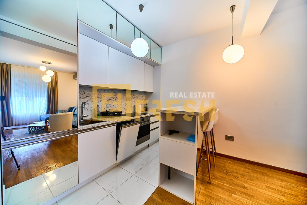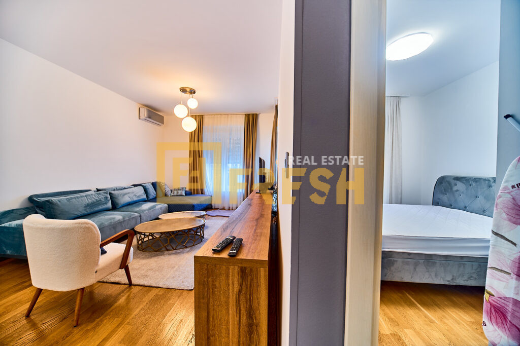 Opis: Lux namješten klimatizovan jednosoban stan, površine 45m2, Zabjelo-Južna kapija grada.