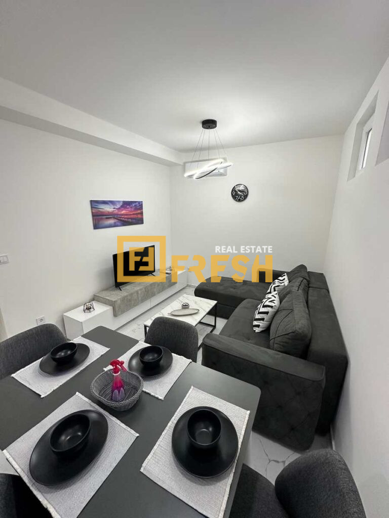 Opis: Jednosoban nov, namješten stan, površine 44m2, Zabjelo, kod Mutlicoma, polusuteren.