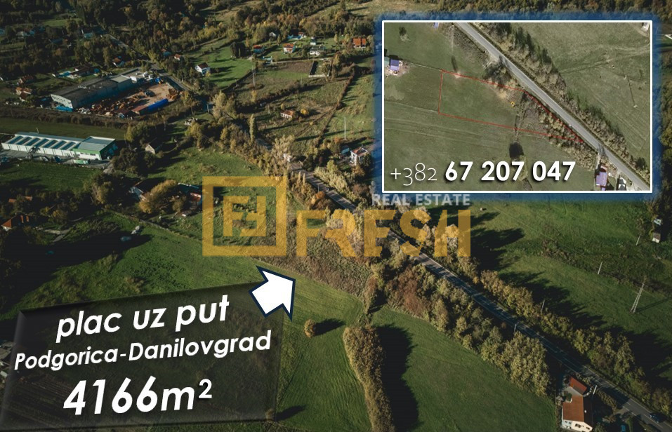 Plac uz put Podgorica-Danilovgrad, 4166m2, Prodaja