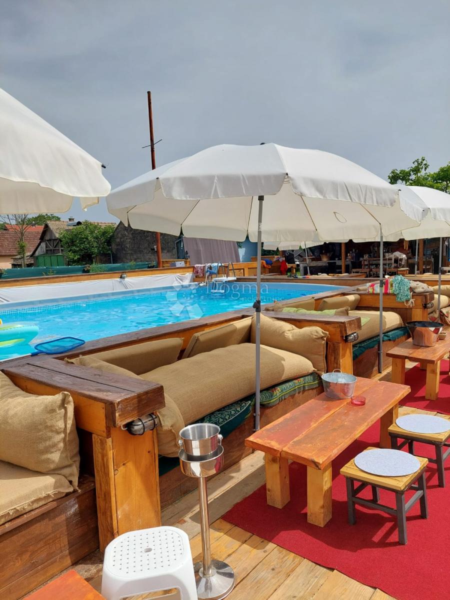 - BAR & PEČENJARE: Natkrivena pomoćna zgrada s roštiljima i šankom s pogledom na bazen – savršeno za catering i cjelodnevni servis....