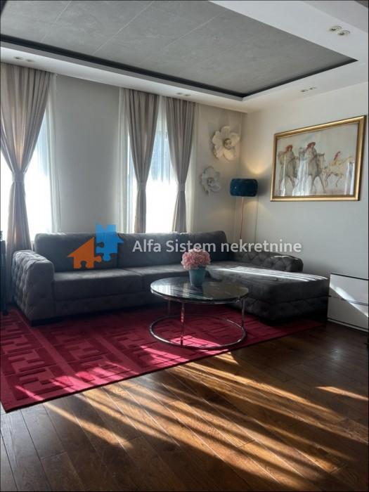 Opis: Izdaje se luksuzan duplex stan od 107 m² na odličnoj lokaciji u Denkovoj bašti. Na donjem nivou nalazi se kuhinja, trpezarija i dnevni boravak sa velikom terasom koja se prostire duž celog stana. Gornji nivo čine četiri sobe i kupatilo — glavna spavaća soba, dečija soba, radna soba i garderober sa policama i fiokama. Stan je moderno opremljen, klimatizovan i nalazi se u zgradi sa video nadzorom. Grejanje je na norveške radijatore. Infostan je oko 5.000din a struja po potrošnji.