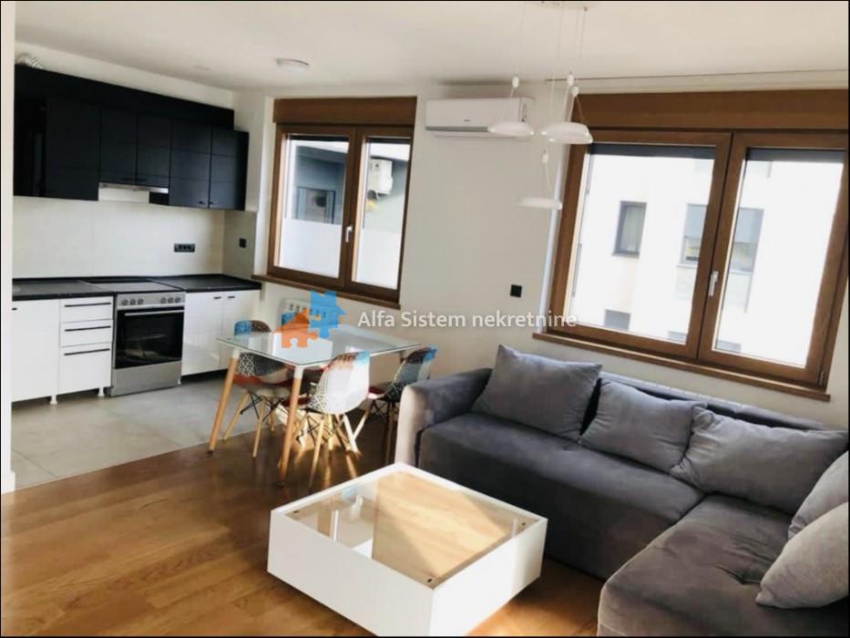 Opis: Izdaje se luksuzan 2.5-soban stan od 69 m² u modernom kompleksu Kapije Vračara, smešten na 3. spratu zgrade sa liftom i video nadzorom. Stan se sastoji od dnevne sobe, trpezarije, kuhinje, velike i male spavaće sobe, kupatila, posebnog toaleta i terase. U cenu zakupa uključeno je parking mesto u zgradi. Stan je odmah useljiv, a depozit je obavezan. Plaćanje je mesečno.