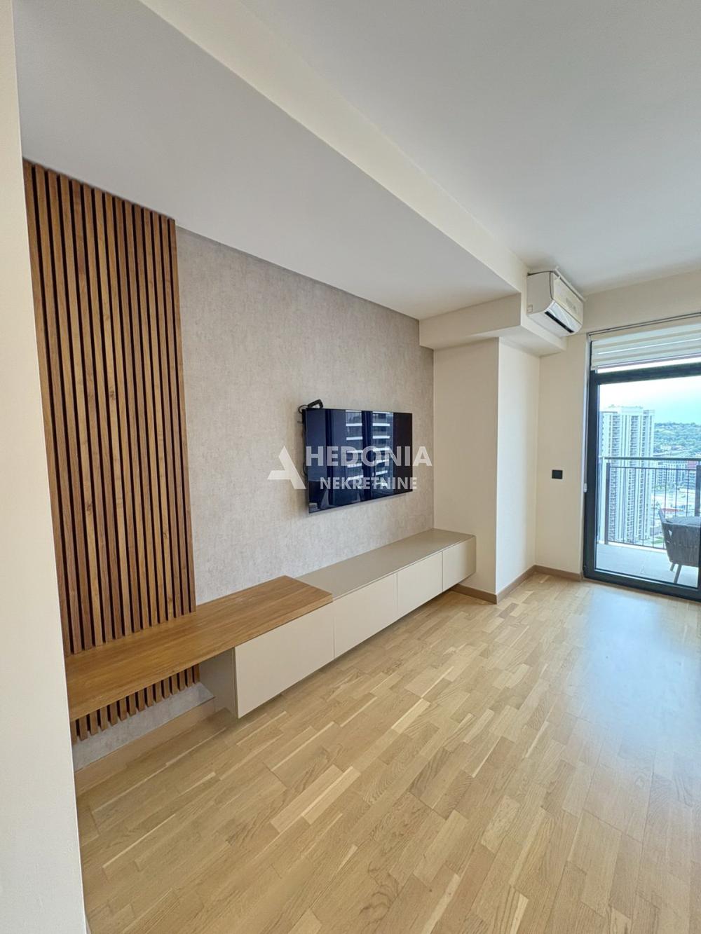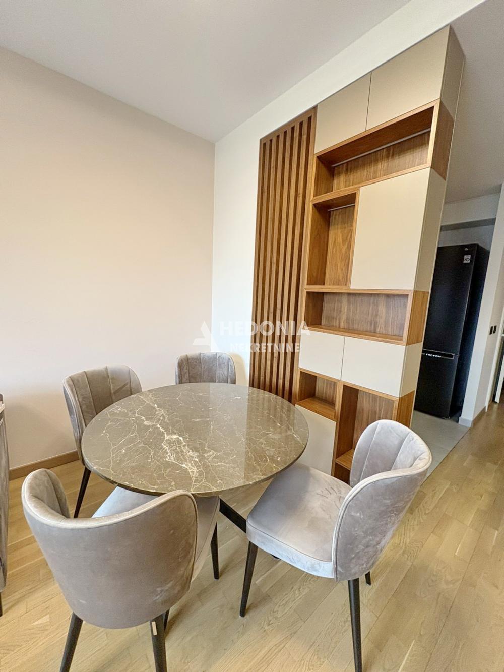 Stan je po strukturi trosoban, funkcionalan, svetao i komforan. Sastoji se iz ulaznog hodnika, kuhinje, dnevnog boravka sa trpezarijom, dve spavaće sobe, dva kupatila i terase. Prodaje se namešten. Mogućnost kupovine dva garažna mesta kao i obezbeđen zakupac u slučaju da se kupuje investiciono. Za svaku preporuku!
