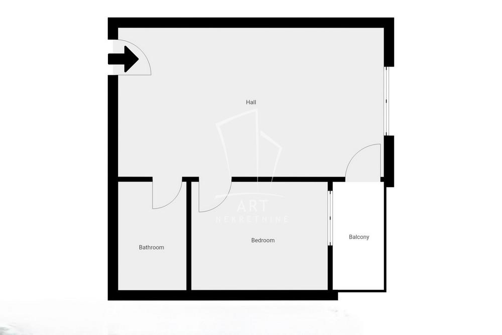 Stan se sastoji od ulaznog dela, hodnika, kupatila, prostranog dnevnog boravka, spavaće sobe i terase.