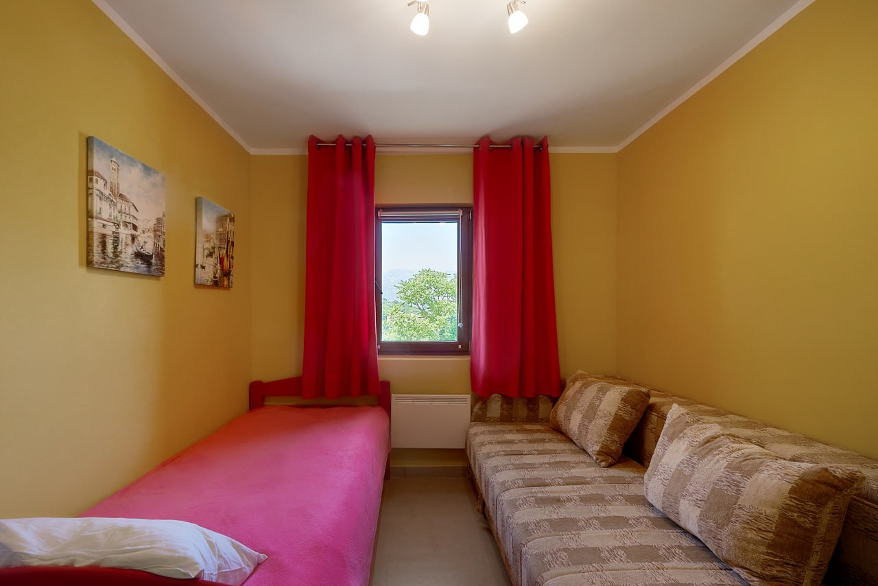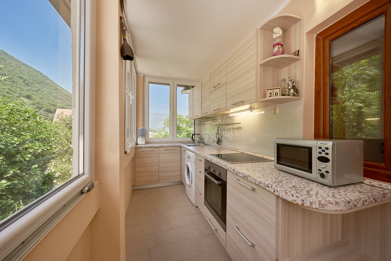 Stan je potpuno opremljen: kuhinja, kupaonica, ormari i prostor za spavanje, zajedno s aparatima i klima uređajem. Svijetao i praktičnog rasporeda, ovaj stan u Kotorskom zaljevu idealan je za cjelogodišnji život i odmor.