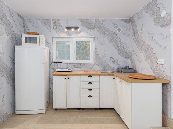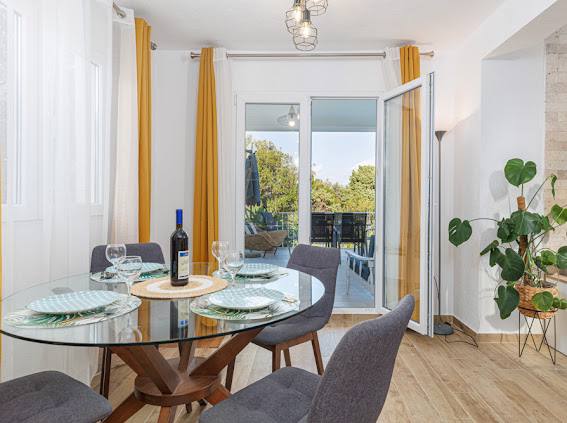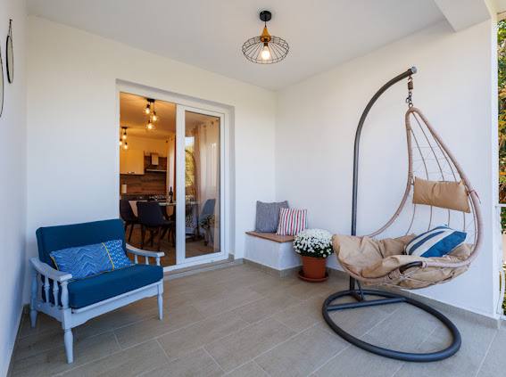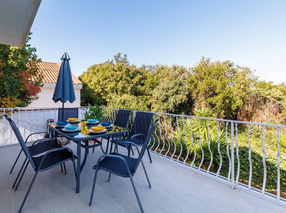 Kuća je nameštena, sa kuhinjama sa ugrađenim aparatima i dva klima uređaja. Imanje je ograđeno i ima opremljen prostor za roštilj. Pogled na planine i more. Udaljenost od mora je 650 metara.