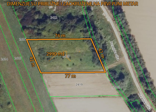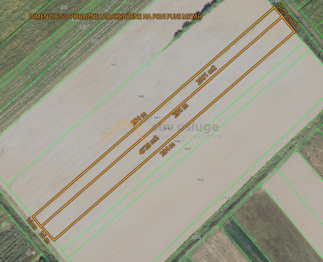 Površina parcela: 947 (2991 m2), 948/2 (4726 m2) i 2420 (2990 m2).