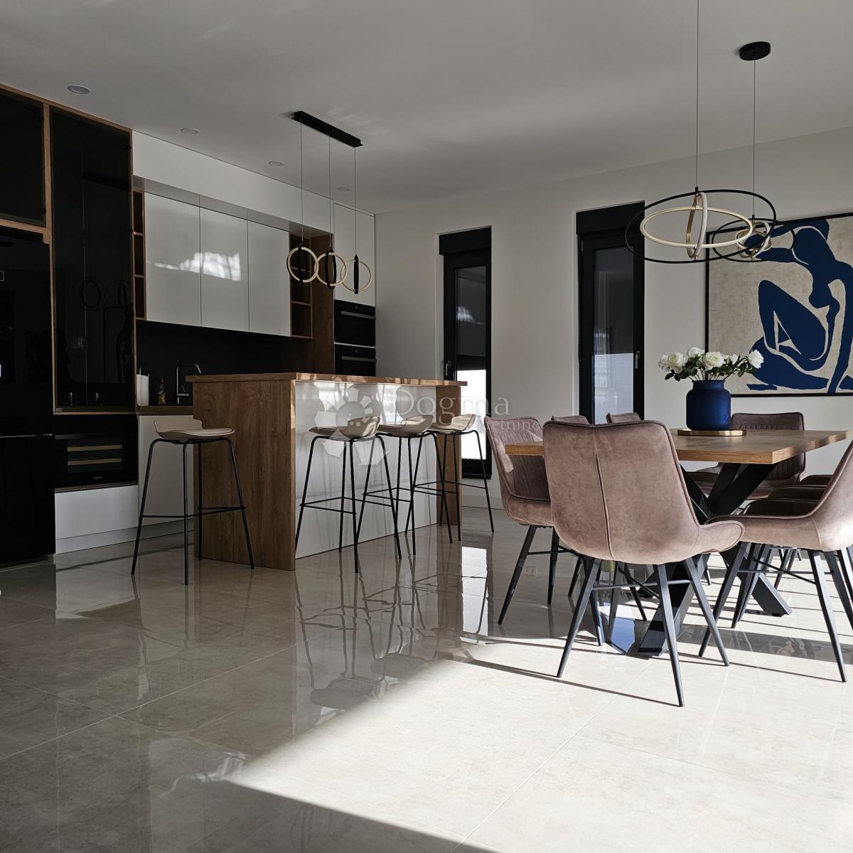 Ova elegantna prizemnica od 150m2 kombinira urbani stil, funkcionalan tlocrt i maksimalnu udobnost, uz iznimnu energetsku učinkovitost i pametan raspored koji omogućuje potpunu privatnost i fluidnost prostora....