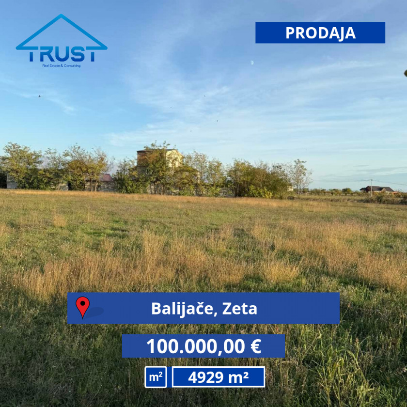 Plac se nalazi u naselju Balijače i pravilnog je pravougaonog oblika. Čine ga više katastarskih parcela koje su u direktnom kontaktu. Struja i voda su u blizini placa. Prodaje se u cjelini. Od magistrale je udaljen oko 4 km, a od centra Podgorice oko 13 km.