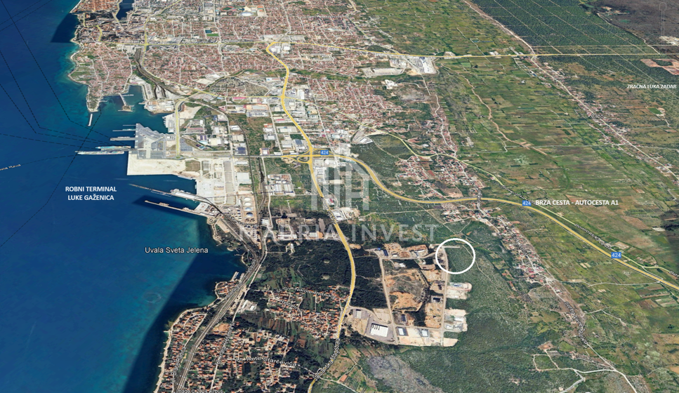 Opis: Građevinsko zemljište poslovno proizvodne namjene nalazi se u poslovnoj zoni Bibinje - Lonići. Zemljište se nalazi na iznimno dobroj lokaciji, par minutu od luke Gaženica, brze ceste-autoput, aerodroma i samog grada Zadra. Kompletna infrastruktura (struja, voda, kanalizacija, asfaltni put) je uz sam teren.