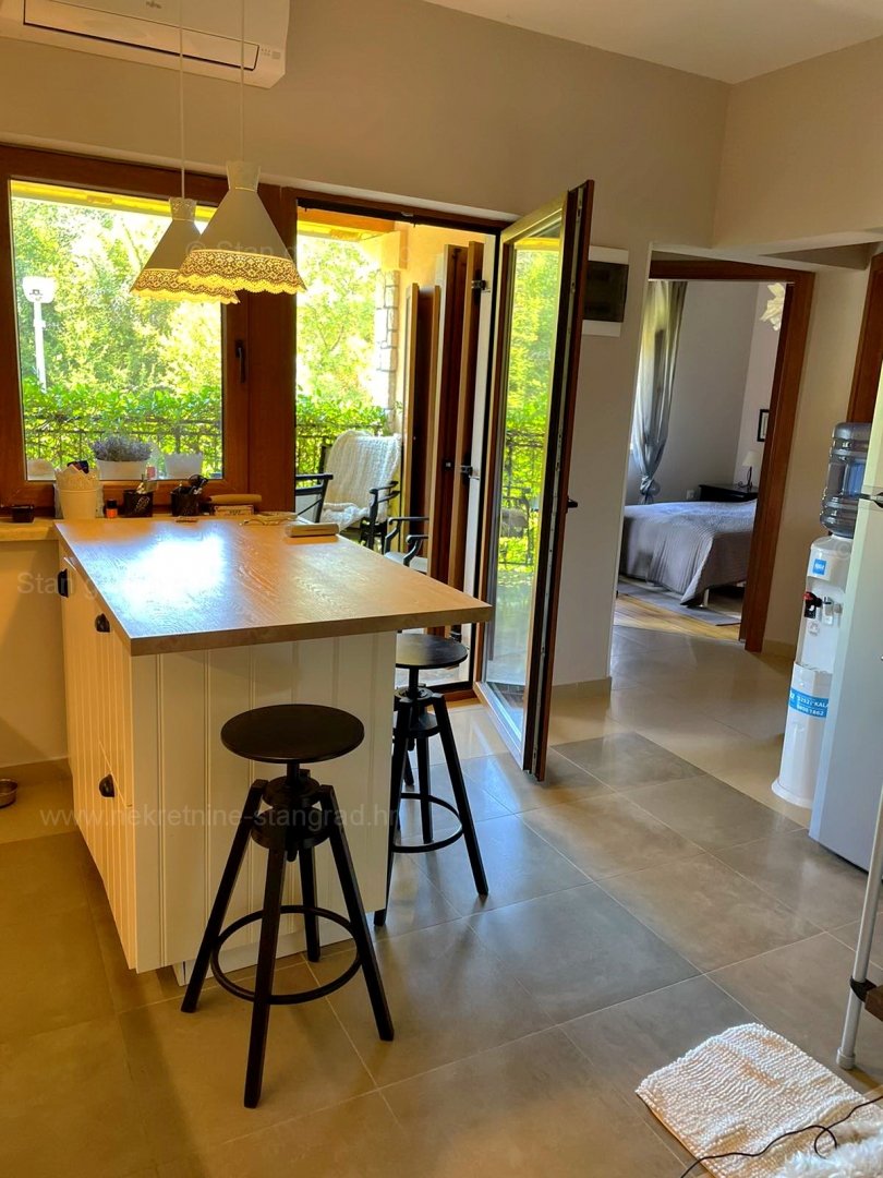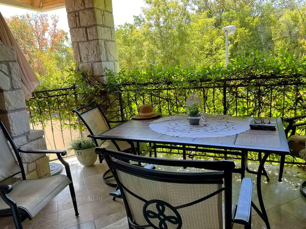 Opis: U ponudi naše agencije na super atraktivnom sjevernojadranskom području Otok Krk se prodaje potpuno uređen apartman koji pruža savršen ugođaj provođenja godišnjih i vikend odmora. Izdvojeni apartman se nalazi u urbaniziranoj rezidencijalnoj zoni nedaleko centra, mora, plaža i životno potrebnih sadržaja u mjestu Malinska. Po tipu nekretnine je ovo prostrani dvoetažni apartman s ulazom na nižoj etaži. U suvremeno građenom objektu, apartman se prostire preko 1. etaže i potkrovlja. Apartman obuhvaća ukupnu površinu od približno 84 m2. Sastoji se od ulaznog hodnika, kuhinje s blagovaonom, dvije sobe, kupaone i prostrane natkrivene terase s pogledom na zelenilo. U potkrovlju se nalazi spavaća soba s kupaonom. Stan je kompletno namješten i odmah useljiv. Nekretnina je kompletno opremljena modernim namještajem te suvremenom i kvalitetnom tehničkom opremom. Vlasnik apartmana na raspolaganju će imati jedno parkirno mjesto. Povrh navedenih značajki, ovaj je apartman vrlo dobro orijentiran i nudi lijep pogled na more i primorje. Ovaj apartman je u vlasništvu fizičke osobe i na ime njegovog prijenosa kupac je u obvezi plaćanja poreza na promet nekretnine u visini 3%....