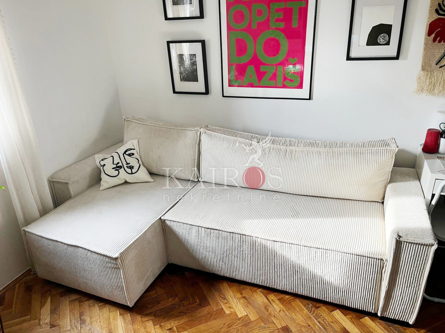 Opis: SRDOČI, kompletno uređena garsonijera na 1. katu, atraktivnog naselja, nadomak svih sadržaja. Nova kupaonica, namještena i opremljena.