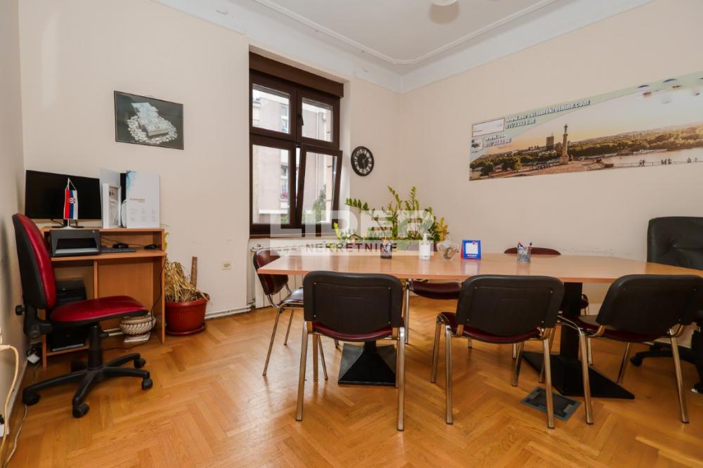 Opis: U salonskoj zgradi, sa uređenom fasadom, renoviran stan, sa visinom od 3,2m, toaletom. Sunčan, svetao, dvostrano orijentisan, ka jednoj od najlepših ulica u gradu. Može prazan ili sa kancelarijskim nameštajem. agencijska provizija 50%