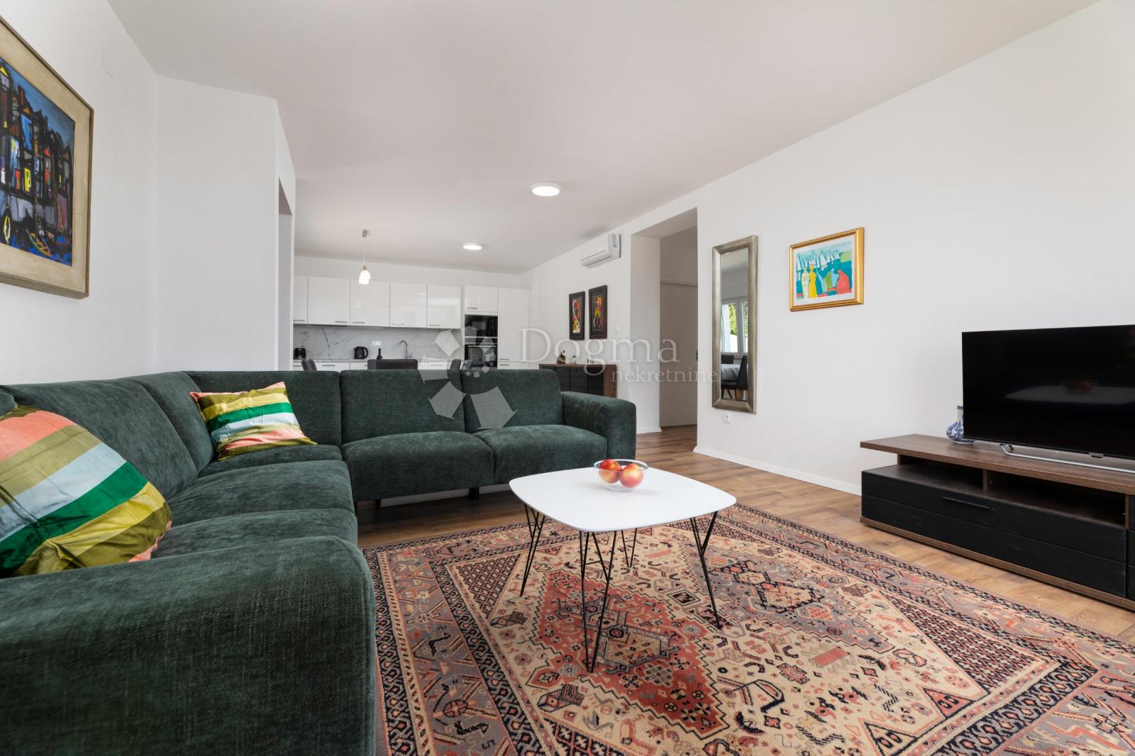 Prizemlje - stan koji se sastoji od dnevnog boravka,kuhinje s blagavaonom,dvije spavaće sobe,dvije kupaone,hodnika,natkrivenog balkona. Pripadaju mu dva parkirna mjesta.
