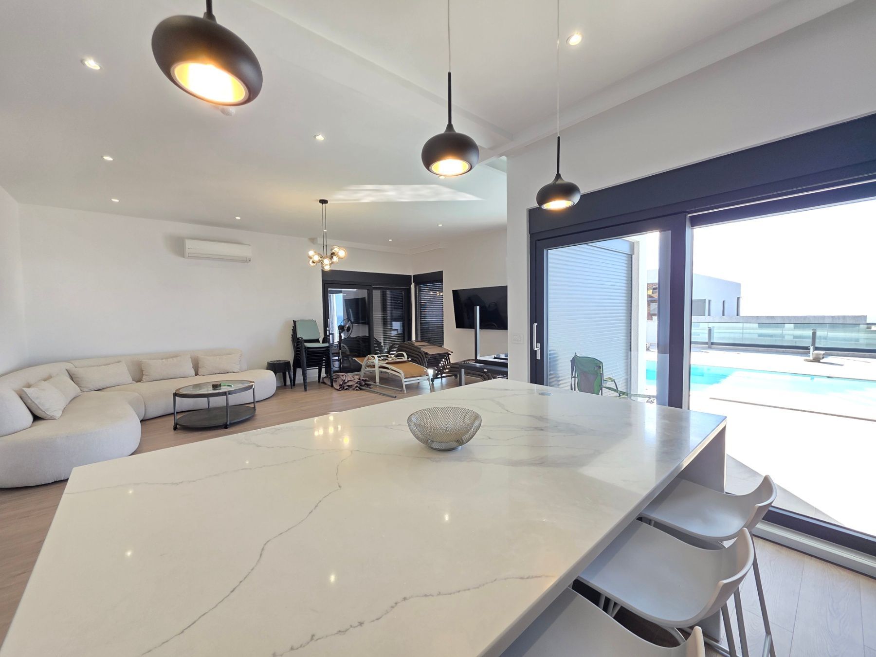 Opis: Enterijer vile je pažljivo dizajniran i kompletno opremljen, pružajući savršen balans luksuza i funkcionalnosti. Sastoji se od sedam spavaćih soba, kao i 6 kupatila. Prostran dnevni boravak obuhvata kuhinju, trpezariju i TV zonu. Dnevni boravak ima direktan izlaz na terasu koja vodi ka bazenu. Na vrhu kuće nalazi se velika krovna terasa , koja pruža fascinantan panoramski pogled na Jadran i planinske horizontale. Vila je udaljena svega 500 metara od mora, na nadmorskoj visini od oko 200 metara, što garantuje prelep pogled i prijatnu klimu. U neposrednoj blizini nalaze se popularne plaže Trsteno, Ploče i Jaz (2–4 km), dok su market i benzinska stanica otvoreni tokom cele godine. Grad Budva udaljen je 9 km, dok su Kotor i Tivat na oko 23 km. Aerodromi u Tivtu, Podgorici i Dubrovniku lako su dostupni, što ovu lokaciju čini izuzetno praktičnom i atraktivnom. Ova vila predstavlja idealnu priliku za one koji traže luksuznu, prostranu i potpuno opremljenu nekretninu na jednoj od najlepših lokacija crnogorskog primorja – kako za život, tako i za investiciju ili izdavanje tokom cele godine.