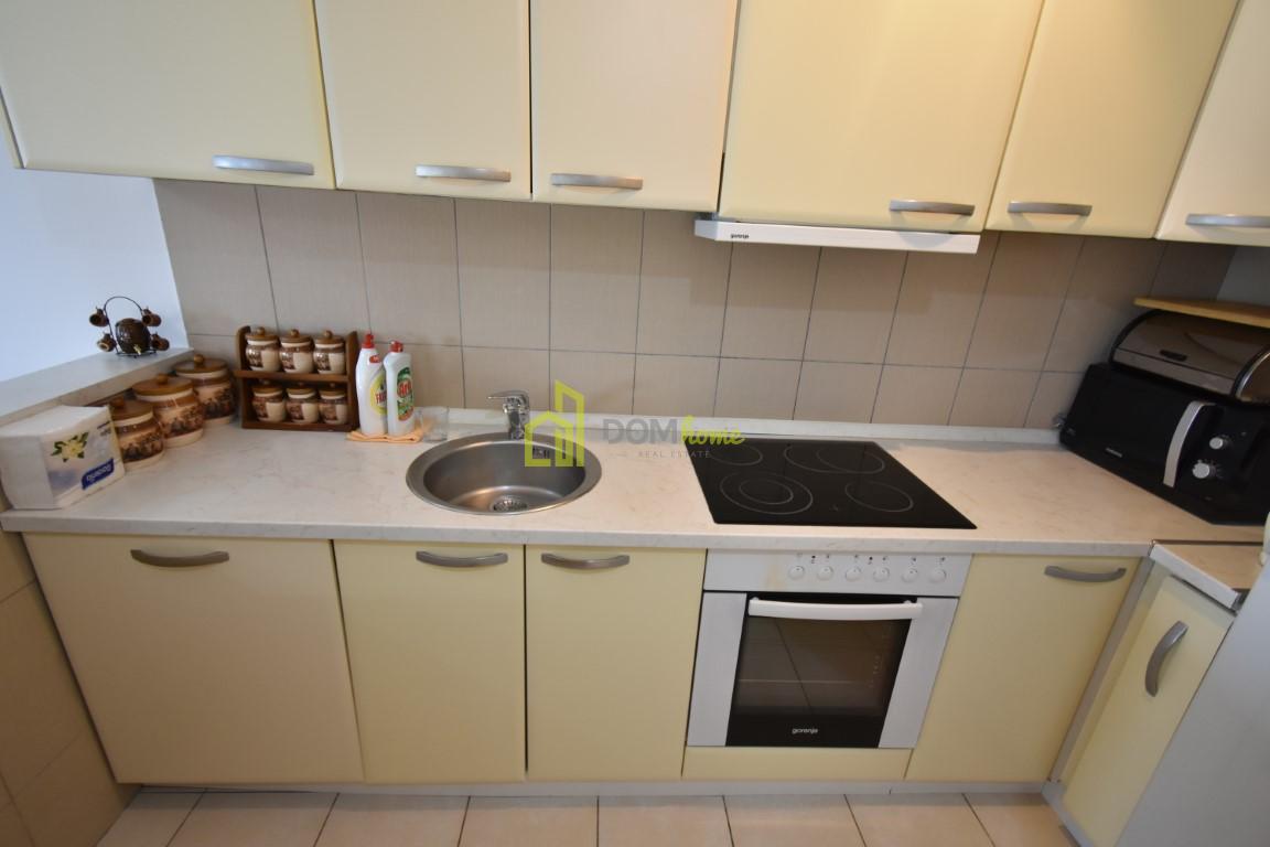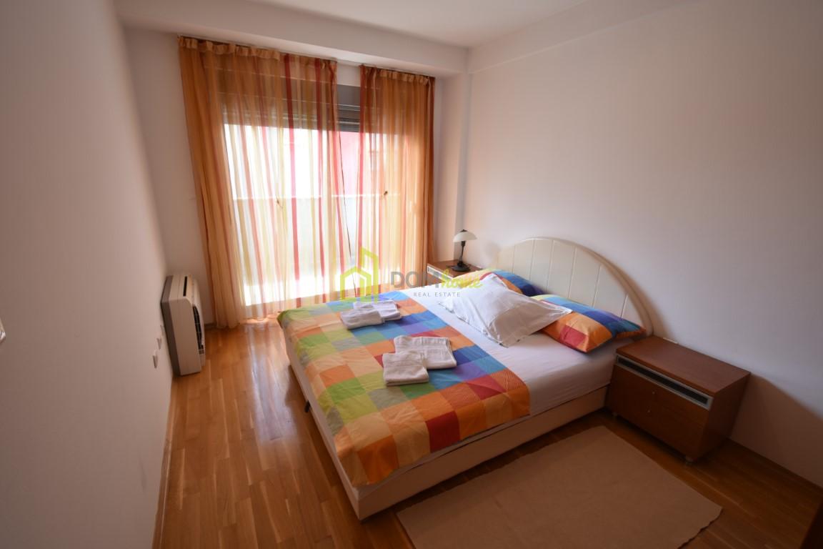 Lijepo namješten, klimatizovan, ima ugrađenu invertorsku klimu, takođe posjeduje garažno mjesto u podzemnoj garaži površine 12m2, koje je uračunato u cijenu zakupa.