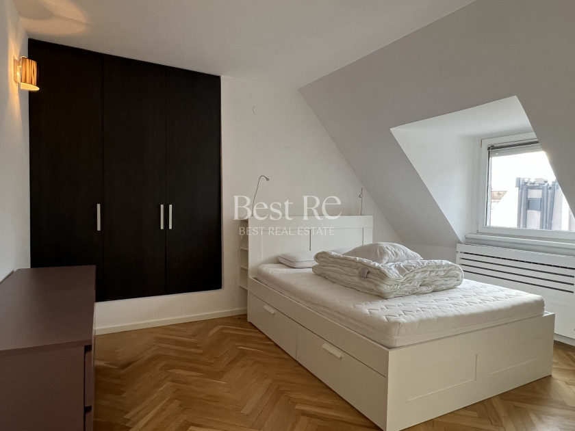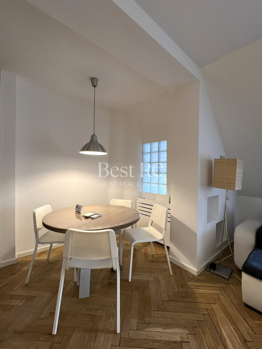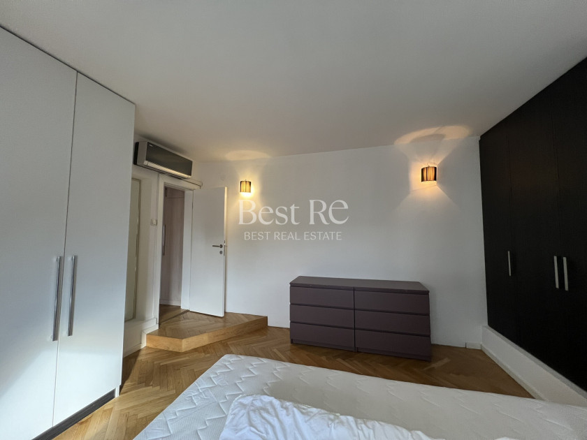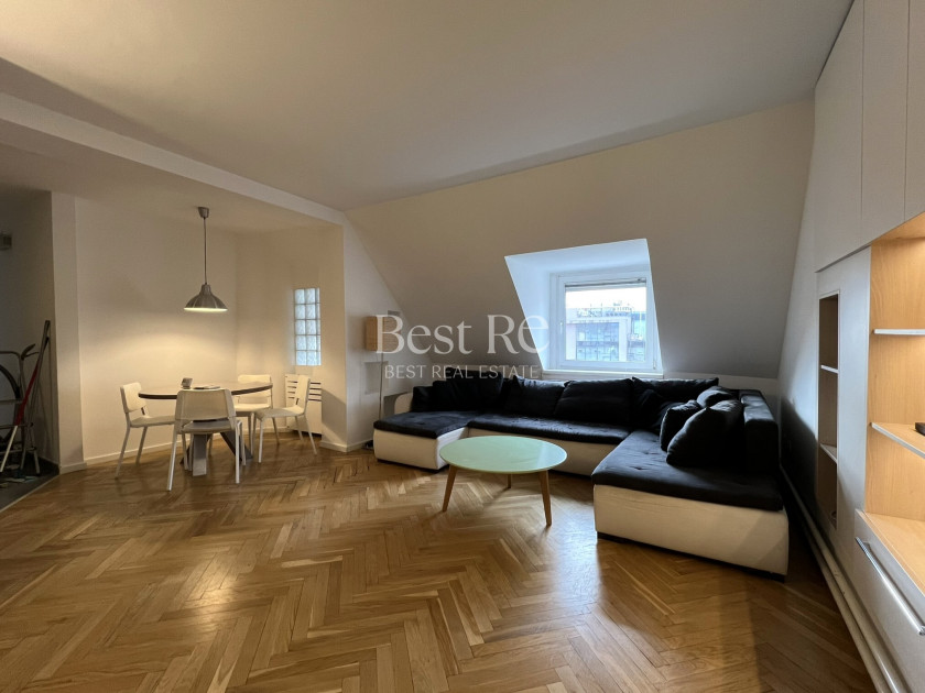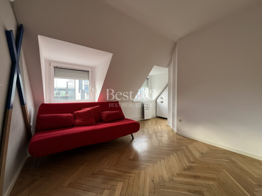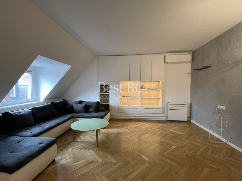 Opis: Stan se nalazi u zgradi iz 1921. godine, sa prelepom fasadom, nadomak Kalemegdana i Knez Mihajlove ulice. Nastao je rekonstrukcijom postojećeg stambenog prostora na poslednjem spratu zgrade, koji nije salonskog tipa. Liftom se stiže do četvrtog sprata, a potom stepenicama do petog sprata, gde se stan i nalazi. Na spratu se nalazi još samo jedan stan.