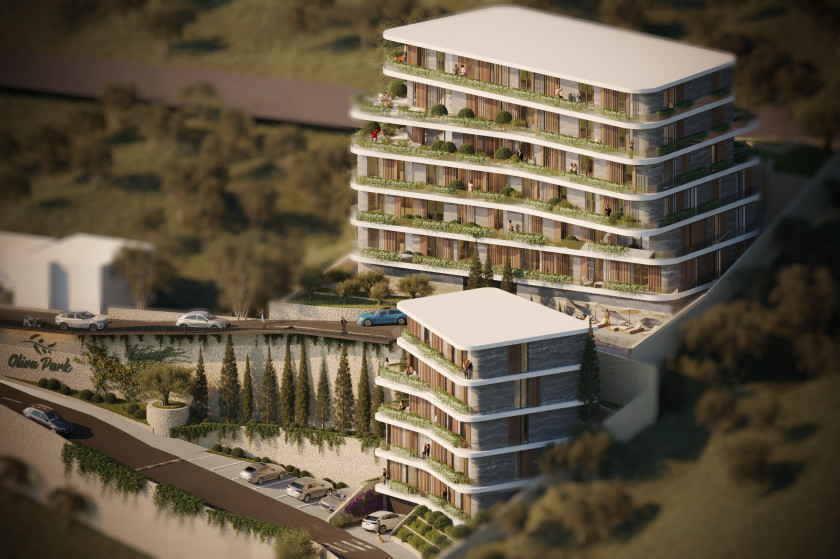 Veća zgrada, smještena iznad, čija izgradnja počinje sada i predstavlja aktuelnu ponudu stanova.