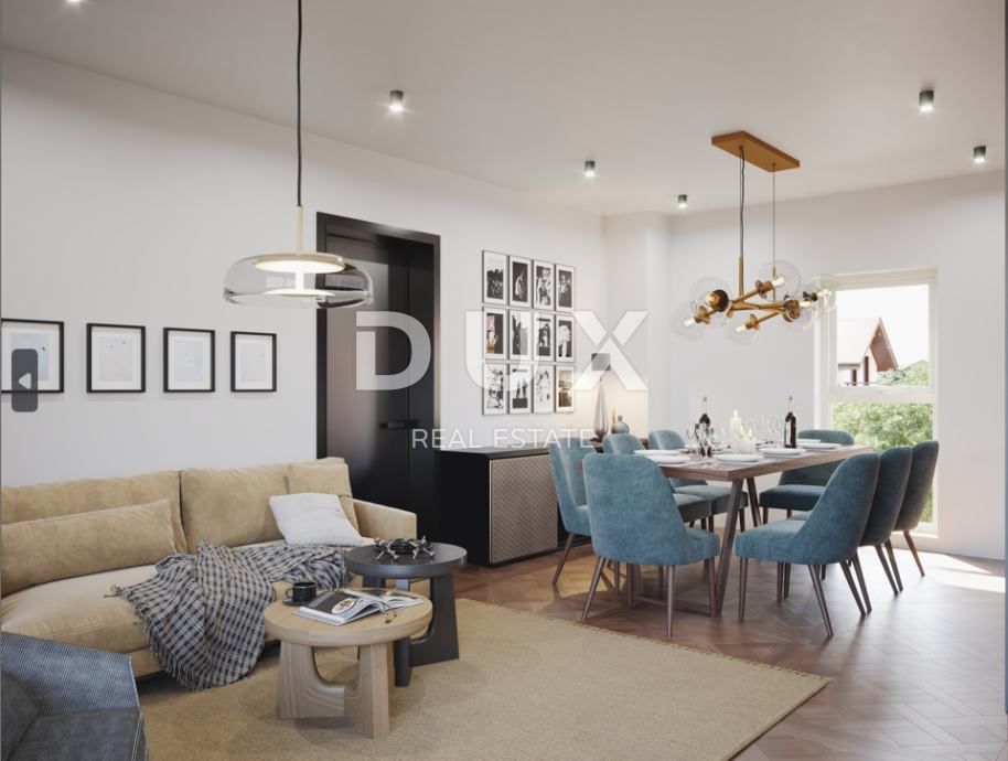 Stan od 120 m2 sastoji se od dnevnog boravka, kuhinje sa blagovaonom, tri spavaće sobe, dvije kupaonice i terase.