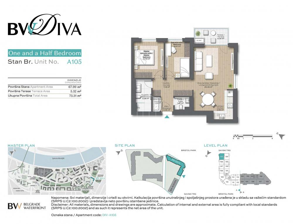 Opis: BW Diva - nova zgrada u ponudi u naselju Beograd na vodi. Nudimo stan na 1. spratu sa dve spavaće sobe koji se sastoji od: ulaznog hodnika, dnevnog boravka sa trpezarijom i kuhinjom, dve spavaće sobe, master kupatila, toaleta vešernice i terase. Dvostrana orijentacija, dobra osvetljenost. Odličan kao poslovni prostor, ali i za život.