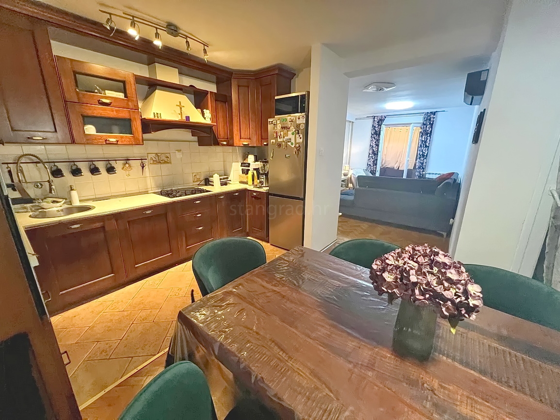 U vrlo dobrom i kvalitetnom objektu, apartman je smješten na 2. etaži. Površina ovog apartmana iznosi ukupno 84 m2. U navedenoj površini sadržani su ulazni hodnik, dnevni boravak i kuhinja s blagovaonicom, 2 spavaće sobe, kupaonica, wc i dvije lođe. Unutrašnjost nekretnine je nedavno potpuno renovirana a prostor kompletno namješten novim namještajem i aparatima. Vlasnik apartmana može neometano koristiti sve pripadajuće zajedničke dijelove i prostore nekretnine. Vlasnik apartmana na raspolaganju će imati jedno parkirno mjesto. Povrh navedenog, može se napomenuti i da je apartman orijentiran tako da pruža lijep pogled na simpatičan primorski krajolik i bližu okolicu naselja....