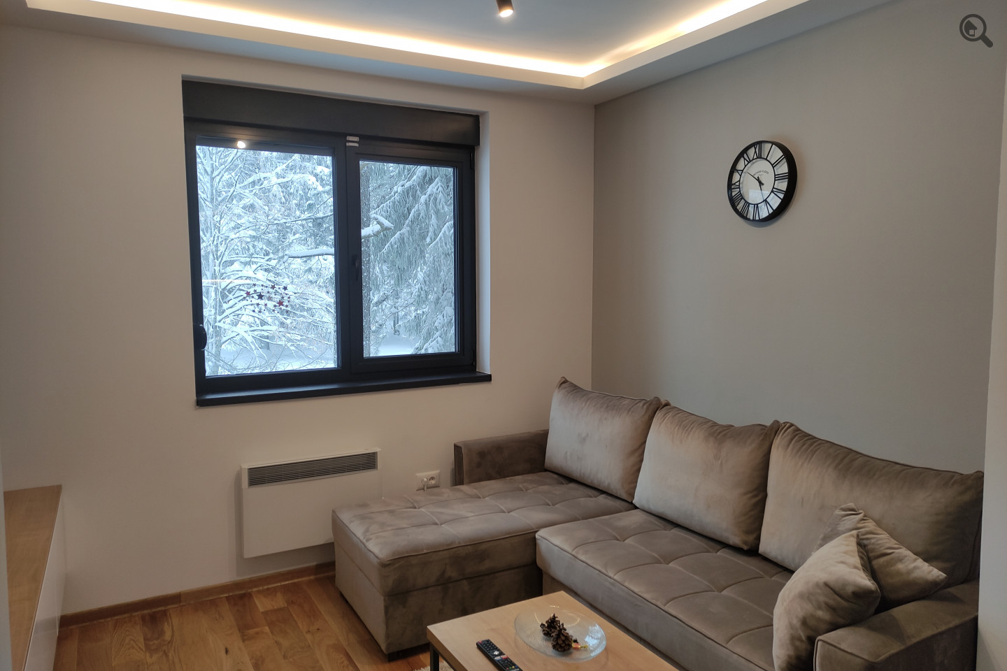 Opis: Apartman Titova Vila 23 nalazi se na veoma atraktivnoj lokaciji, u sklopu kompleksa Titova vila na Zlatiboru (Vila Vardar prvi sprat - ima lift). Smešten je na prvom spratu, a u njemu komotno može boraviti do 4 osobe. Sastoji se odn dnevnog boravka sa garniturom koja se razvlači u udoban ležaj, zasebne spavaće sobe sa bračnim krevetom, kompletno opremljene kuhinje i kupatila sa tuš kabinom. Prateći sadržaj čine norveški radijatori, wifi, LCD tv, peškiri, posteljina, fen za kosu, veš mašina. Dodatnu pogodnost predstavlja terasa sa koje se pruža prelep pogled na okolinu. U blizini apartmana nalazi se trim staza, supermarket, a do centra je potrebno svega nekoliko minuta laganog hoda. Ukoliko dolazite sopstvenim prevozom, na raspolaganju je besplatan privatni parking za goste apartmana.
