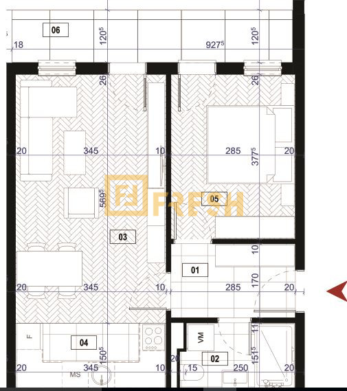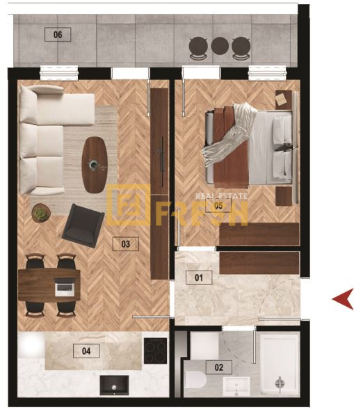 Opis: Jednosoban stan u izgradnji, površine 48.42m2, Zabjelo- bulevar Vojislavljevića.