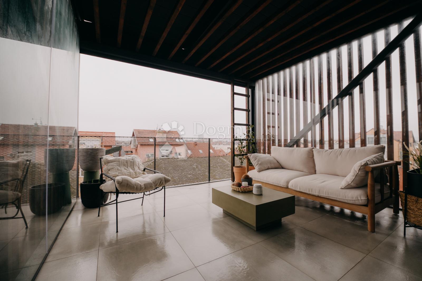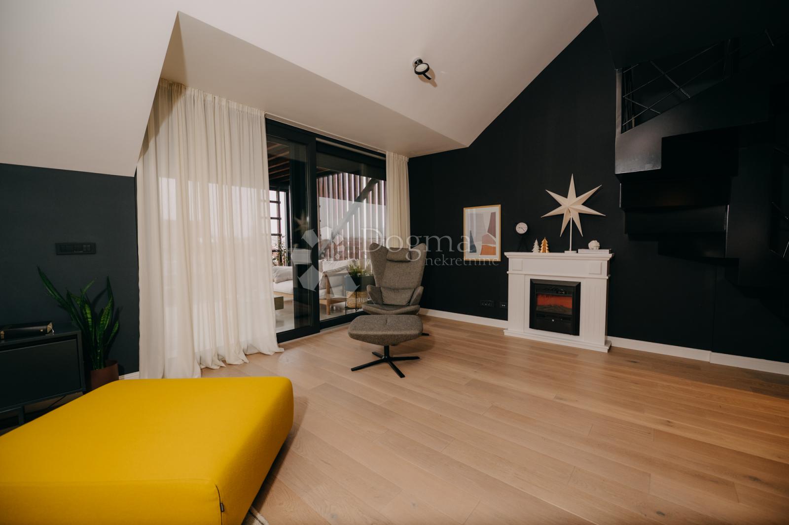 Opis: U mirnoj zgradi maloj zgradi suvremene arhitekture nalazi se dvoetažni penthouse netto korisne površine 165,49 m², uređen s naglaskom na udobnost, kvalitetu materijala i prirodan tijek prostora. Od ulaza do zadnjeg detalja, stan ostavlja dojam doma u kojem je sve na svom mjestu: praktično, skladno i nenametljivo elegantno.