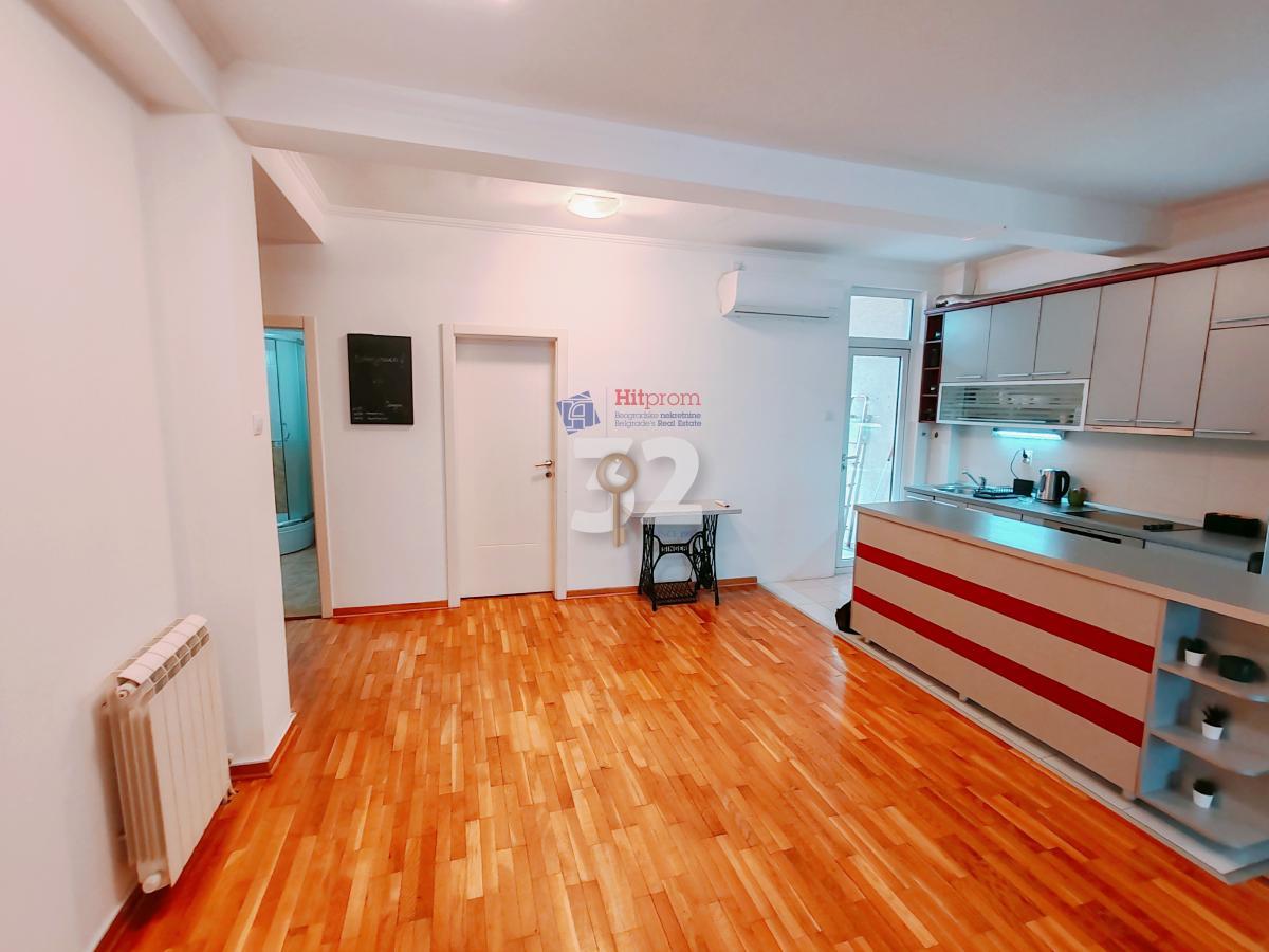 Opis: Izdaje se funkcionalan poslovni prostor na izuzetnoj lokaciji, u neposrednoj blizini Hrama Svetog Save. Prostor je pogodan za širok spektar delatnosti zahvaljujući optimalnoj organizaciji: ulazni hodnik, velika prostorija sa izlazom na terasu, dve odvojene kancelarije, kuhinja sa trpezarijskim delom i izlazom na manju terasu, kao i kupatilo. Prostor je svetao, lako prilagodljiv potrebama različitih poslovnih aktivnosti, a dve odvojene kancelarije omogućavaju komforan radni ambijent.
