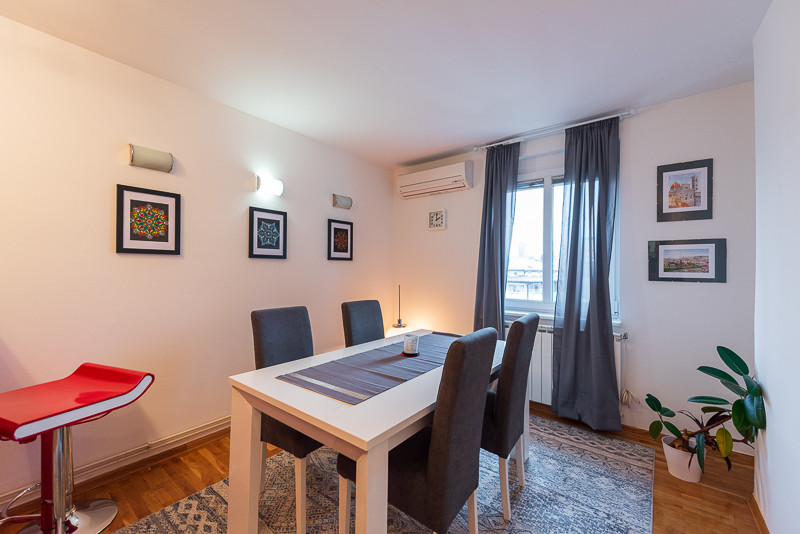 Opis: Iznajmljuje se moderan i odlično raspoređen dvosoban stan površine 61 m², smješten na 4. spratu stambene zgrade u ulici Koševo, općina Centar. Stan se sastoji od prostranog dnevnog boravka, kuhinje sa trpezarijom, jedne spavaće sobe, kupatila, ulaznog hodnika i ostave. Grijanje je plinsko, a dodatnu udobnost pružaju dva klima uređaja. Lokacija je izuzetno atraktivna i pogodna za svakodnevni život. U neposrednoj blizini nalaze se Veliki park, zgrada Predsjedništva, ARIA Mall, brojni kafići, restorani, prodavnice, apoteke te obrazovne i zdravstvene ustanove. Odlična povezanost javnim prevozom omogućava brz pristup svim važnim gradskim sadržajima, dok je strogi centar grada udaljen svega nekoliko minuta hoda. Više informacija možete dobiti na vlastiti zahtjev.