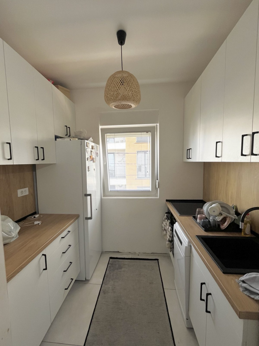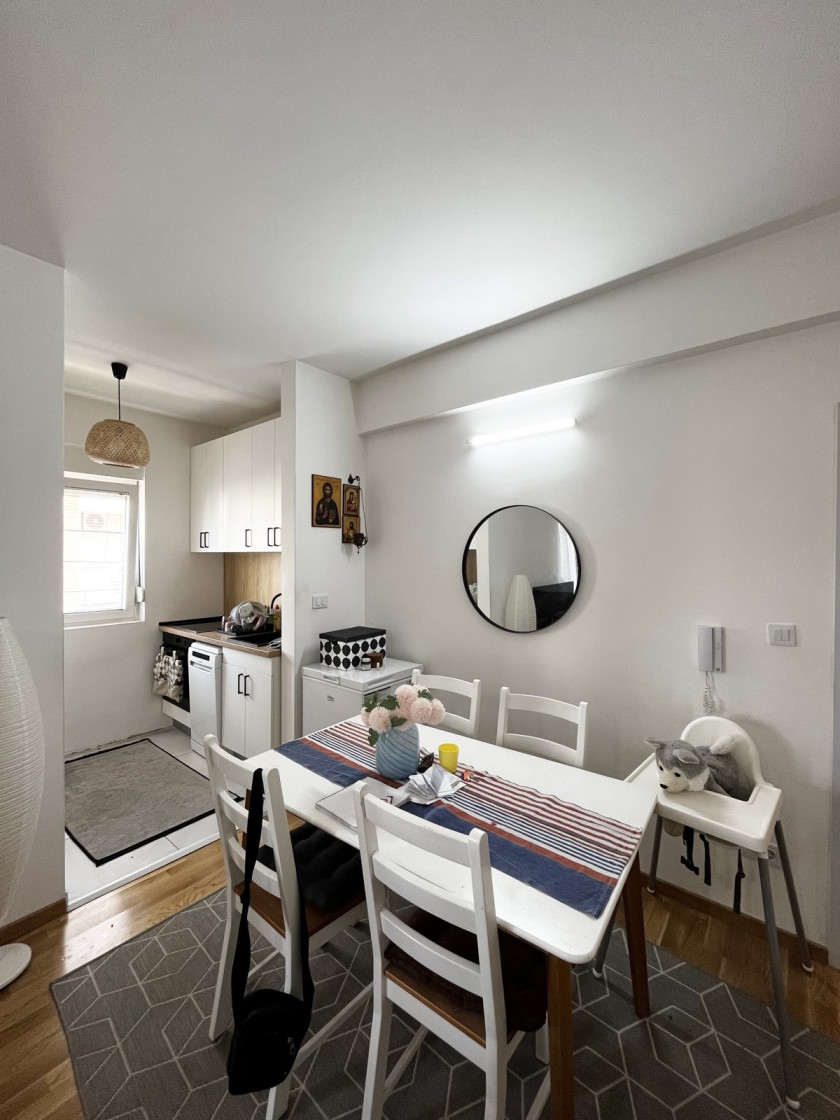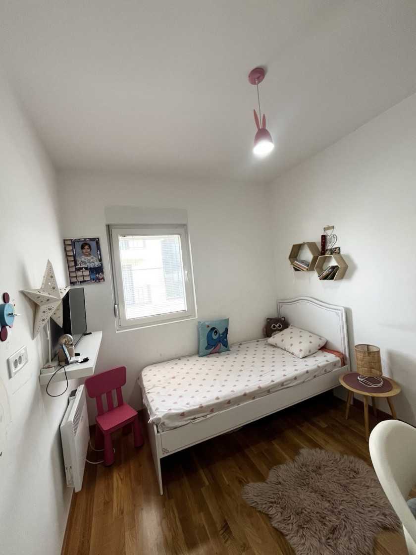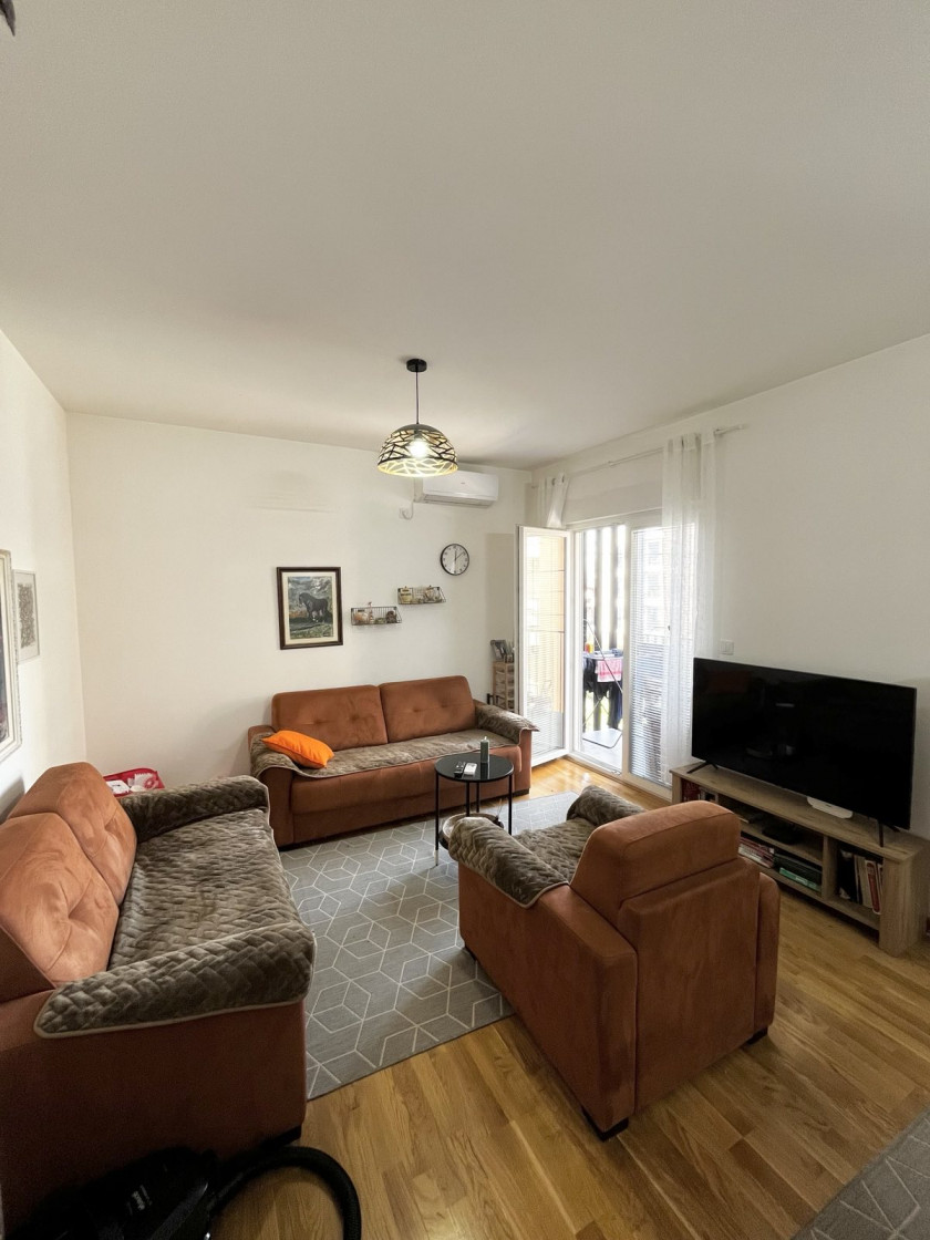Opis: Prodaje se dvosoban namješten stan u novogradnji ukupne stambene površine 54m2, a nalazi se na Zabjelu u blizini pješačkog mosta. Stan je pozcioniran na prvom spratu manje stambene zgrade koja je luksuznijeg tipa gradnje. Stan se sastoji od: ulaznog hodnika, dnevnog boravka, kuhinje i trpezarije, dvije spavaće sobe, kupatila i terase na koju se izlzazi iz denvnog boravka. Stan se prodaje potpuno opremljen, stvari su dobro očuvane i visokog kvaliteta, pa samim tim nijesu potrebna dodatna ulaganja. Zgrada ima svoj privatni parking, a ovom stanu pripada jedno parking mjesto. Nalazi se u mirnom i lijepom okruženju, udaljen je deset minuta hoda od Delte i City Mall-a, pa je tako pogodan za život ili investiciju. Zgrada je useljena početkom prošle godine i rađena je po svim standardima. U bliižem krugu nalazi se sve što je neophodno za život, marketi, apoteke, različiti restorani i saloni.