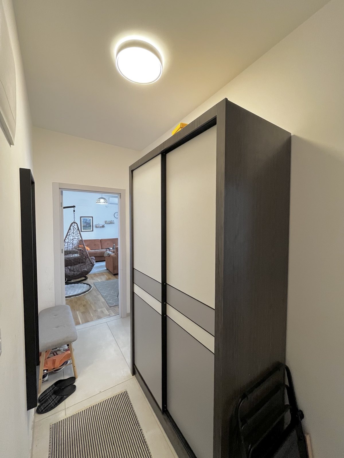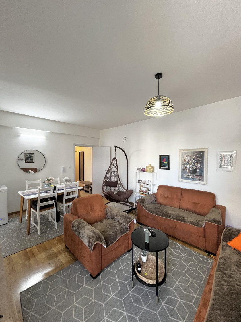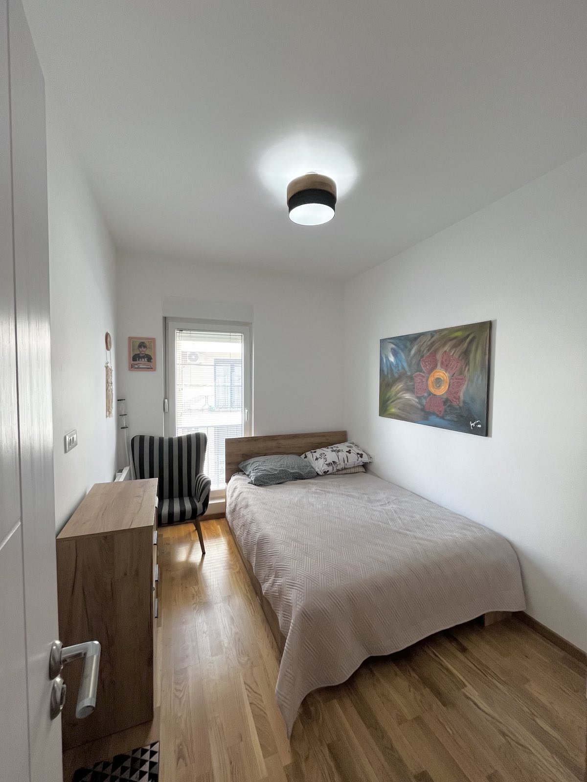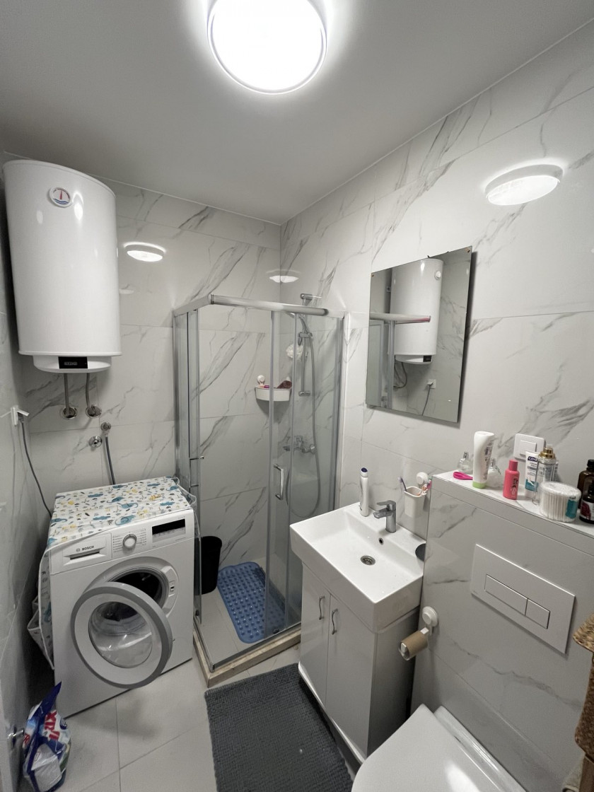 Opis: Prodaje se dvosoban namješten stan u novogradnji ukupne stambene površine 54m2, a nalazi se na Zabjelu u blizini pješačkog mosta. Stan je pozcioniran na prvom spratu manje stambene zgrade koja je luksuznijeg tipa gradnje. Stan se sastoji od: ulaznog hodnika, dnevnog boravka, kuhinje i trpezarije, dvije spavaće sobe, kupatila i terase na koju se izlzazi iz denvnog boravka. Stan se prodaje potpuno opremljen, stvari su dobro očuvane i visokog kvaliteta, pa samim tim nijesu potrebna dodatna ulaganja. Zgrada ima svoj privatni parking, a ovom stanu pripada jedno parking mjesto. Nalazi se u mirnom i lijepom okruženju, udaljen je deset minuta hoda od Delte i City Mall-a, pa je tako pogodan za život ili investiciju. Zgrada je useljena početkom prošle godine i rađena je po svim standardima. U bliižem krugu nalazi se sve što je neophodno za život, marketi, apoteke, različiti restorani i saloni.