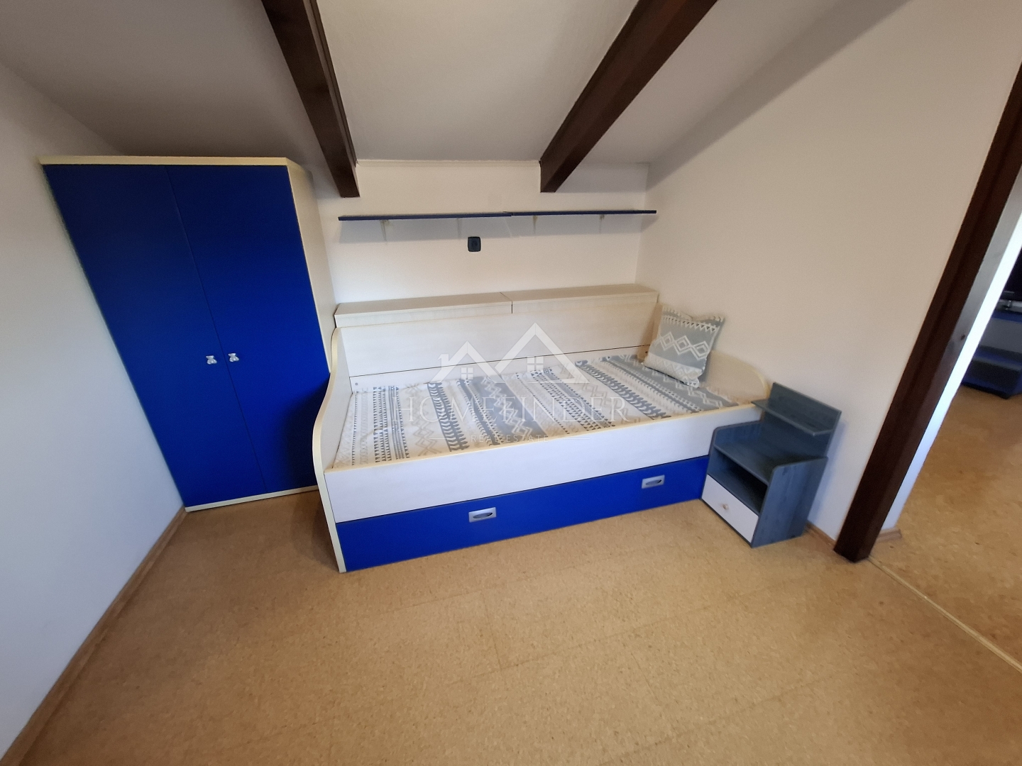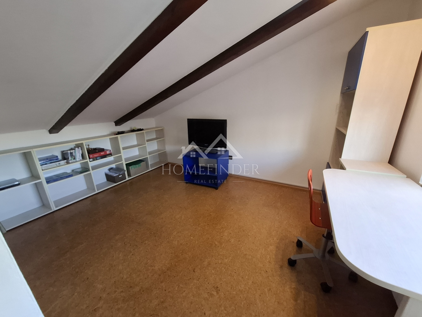 Stan se sastoji od ulaznog hodnika koji vodi u prostrani dnevni boravak povezan s blagovaonicom, dok je kuhinja smještena odvojeno. Na raspolaganju su četiri spavaće sobe, jedna kupaonica s toaletom, dodatna dva toaleta, ostava te galerijski prostor koji se može koristiti kao radni kutak. Unutar stana nalazi se i dodatnih otprilike 3 m² praktičnog prostora za pohranu. Terasa je djelomično natkrivena, što omogućuje ugodan boravak na otvorenom tijekom cijele godine. U podrumu se nalazi spremište od 2,5 m². Vlasništvo je uredno te je moguća kupnja putem kredita.