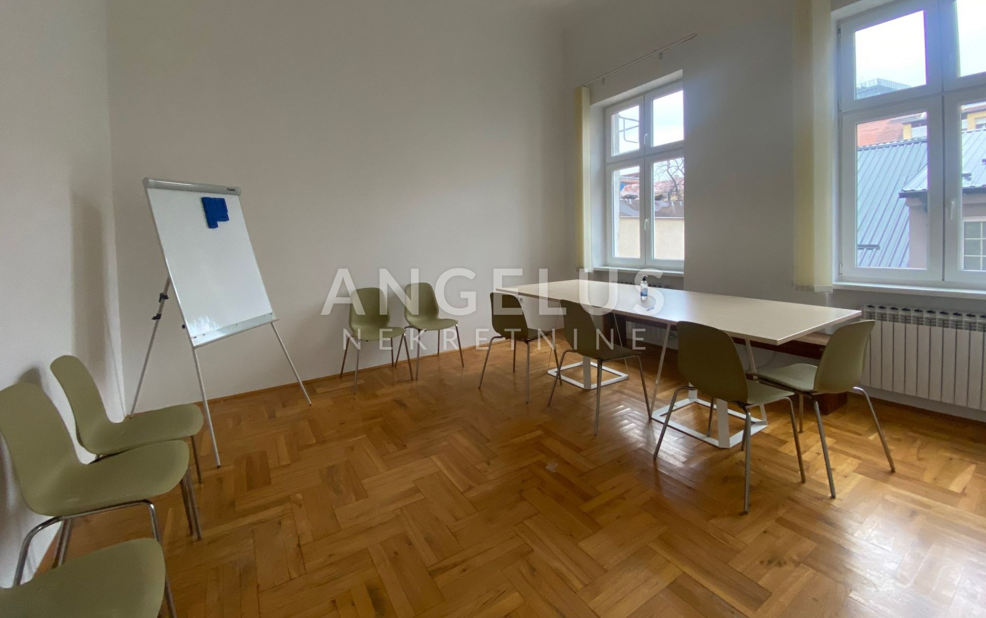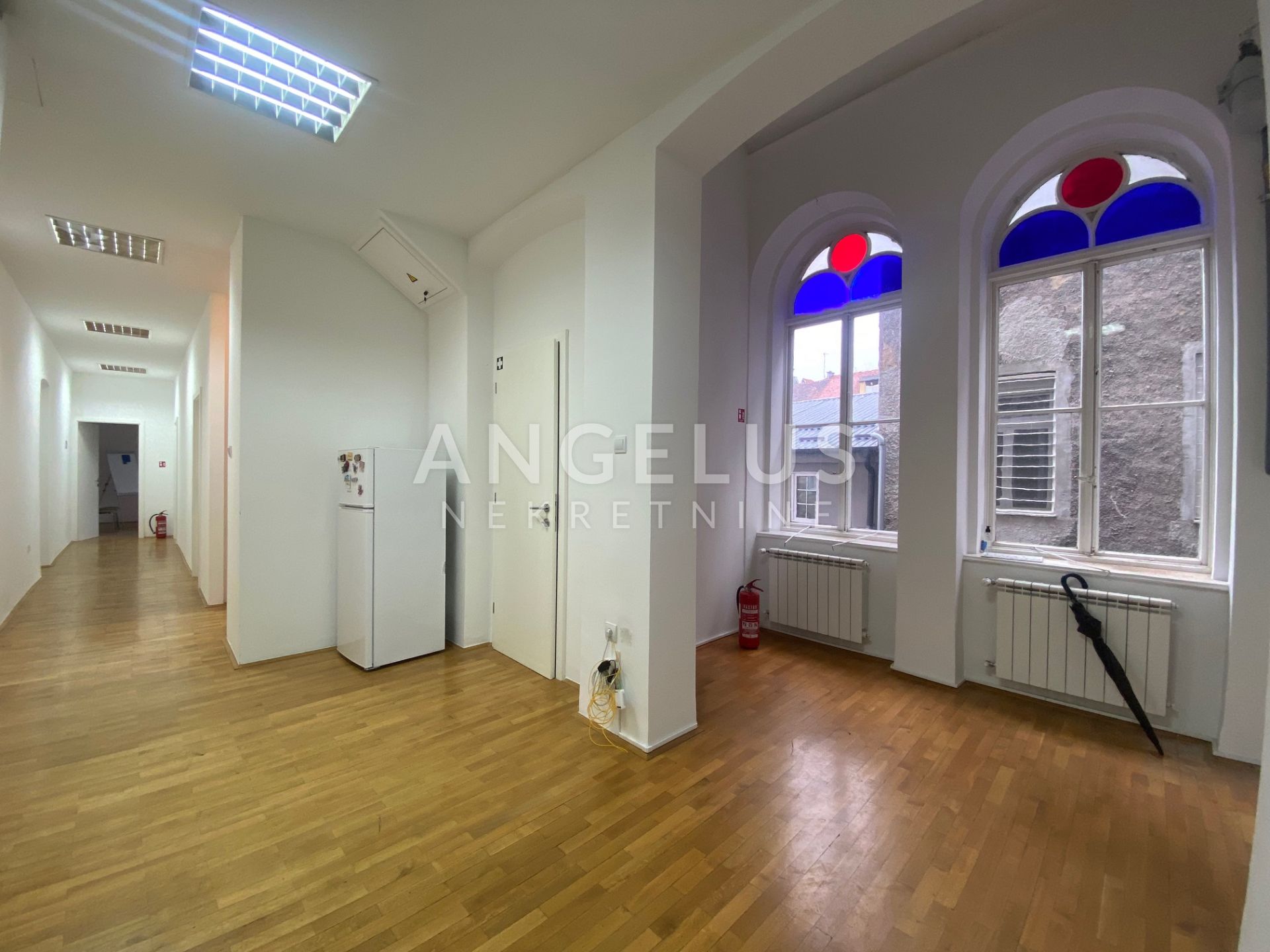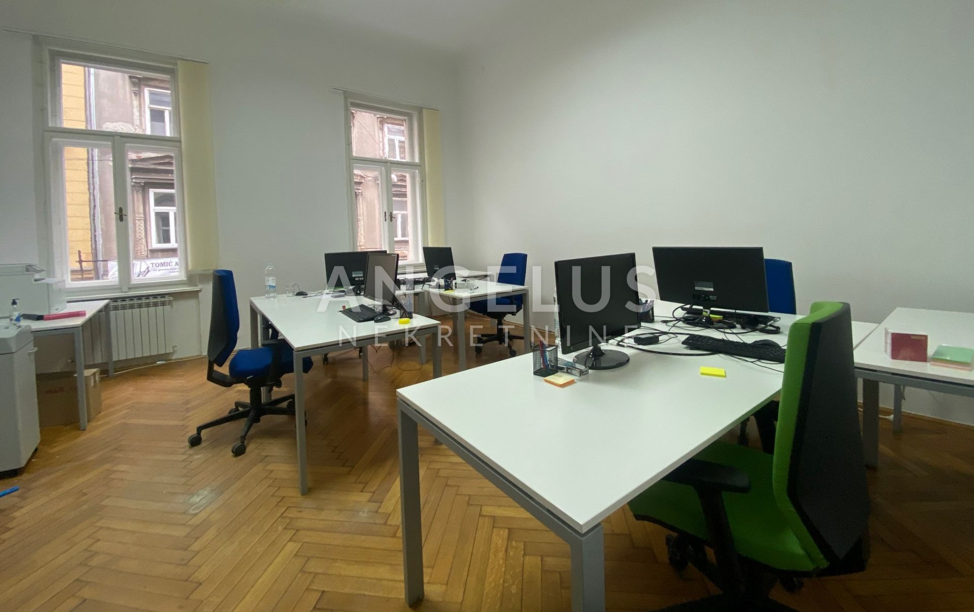 Poslovni prostor površine 184,76m2, koji uz manje i lako izvedive prilagodbe može biti rezidencijalni stambeni prostor, sastoji se od ulaznog hodnika koji na prozorima ima izvorne staklene vitraje, a iz kojeg je moguć pristup u gotovo sve prostorije. S lijeve strane hodnika nalazi se pet prostorija u nizu, orijentiranih na jug, od kojih su neke međusobno povezane. S desne strane hodnika nalaze se tri prostorije u nizu koje su orijentirane na sjever, dva sanitarna čvora, te čajna kuhinja. U prostoru je prisutna optika, a svaka prostorija ima klima uređaj....