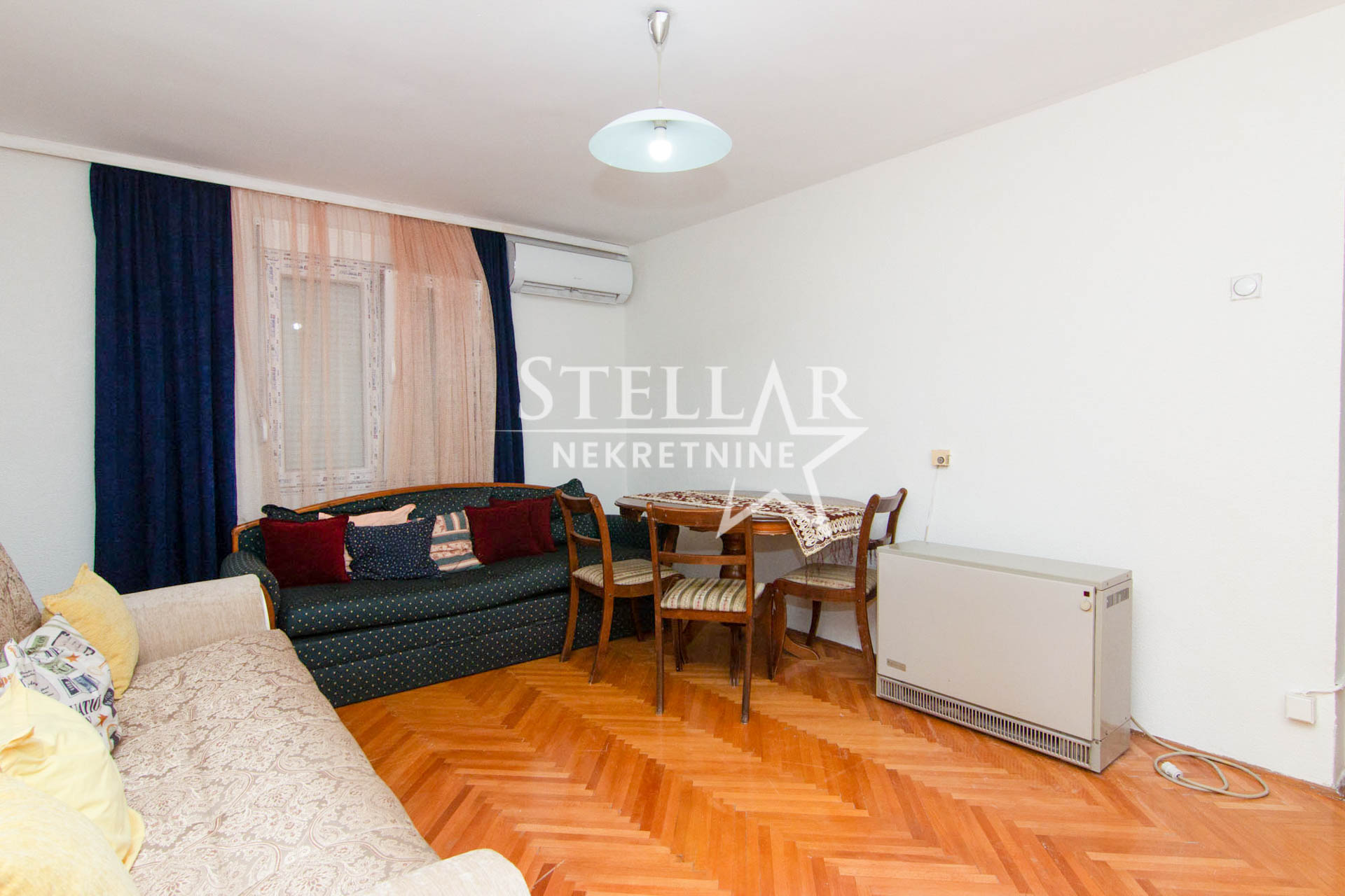 Opis: One-bedroom apartment 46m2 for rent in Konik. The apartment is located on the third floor of a building without an elevator. Fully furnished and ready to move in. The balcony of the apartment is east-facing. There is air conditioning in each room, no TV. The bathroom has a shower and a washing machine.